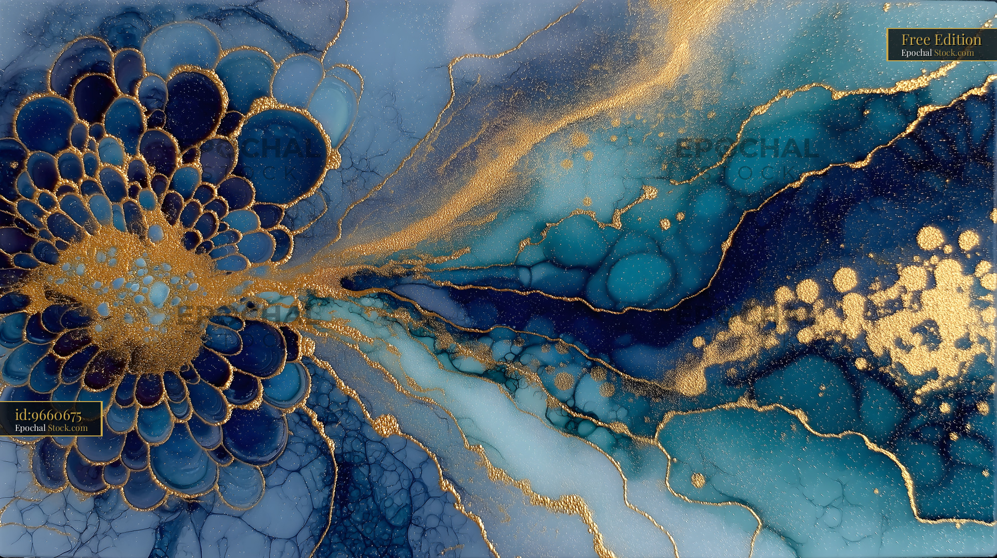 Abstract art with blue and gold patterns on canvas Free Premium Stock Image