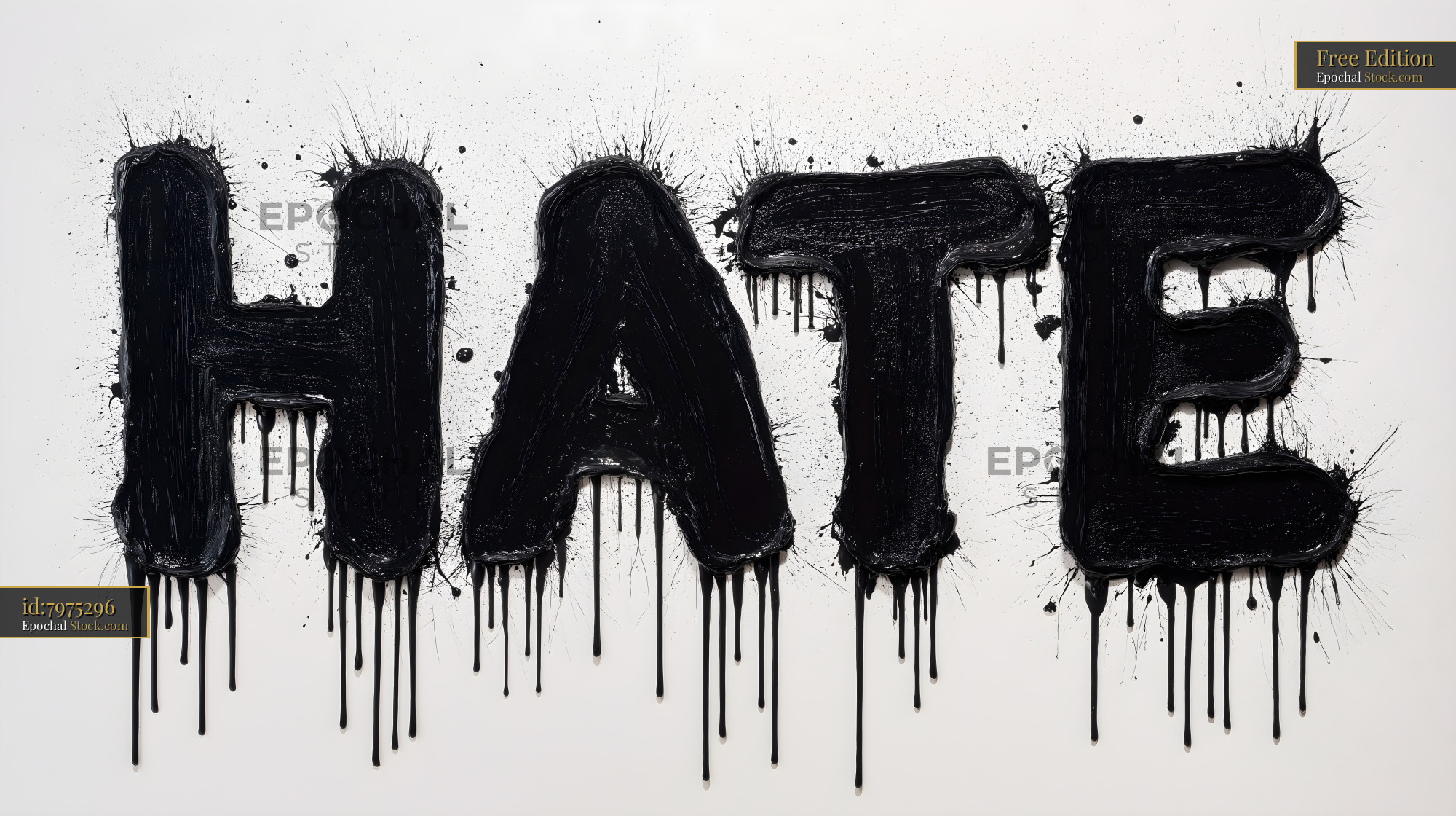 Art piece explores concept of hate using bold black letters Free Premium Stock Photo