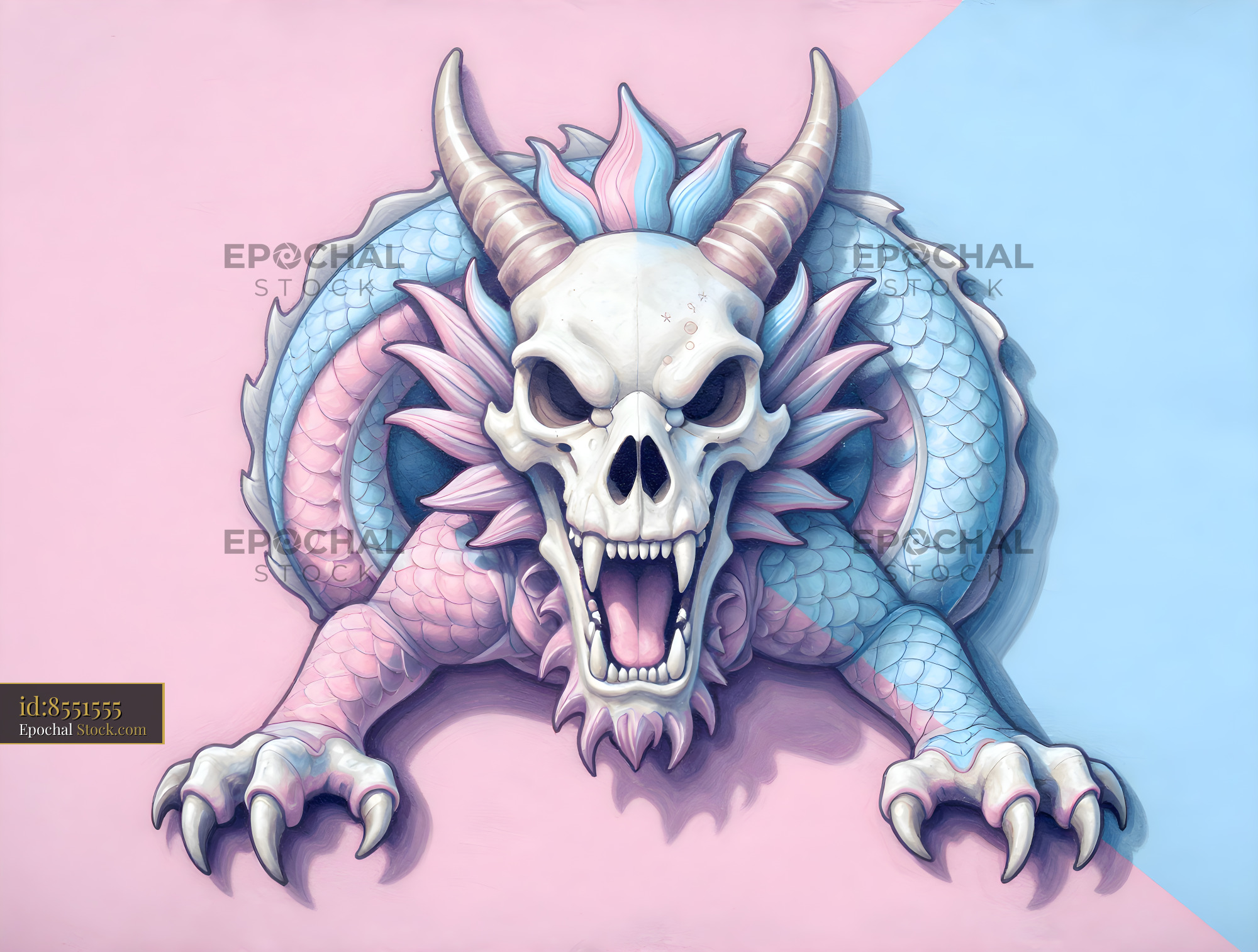 Artistic dragon skull with colorful scales on a background Premium Stock Image