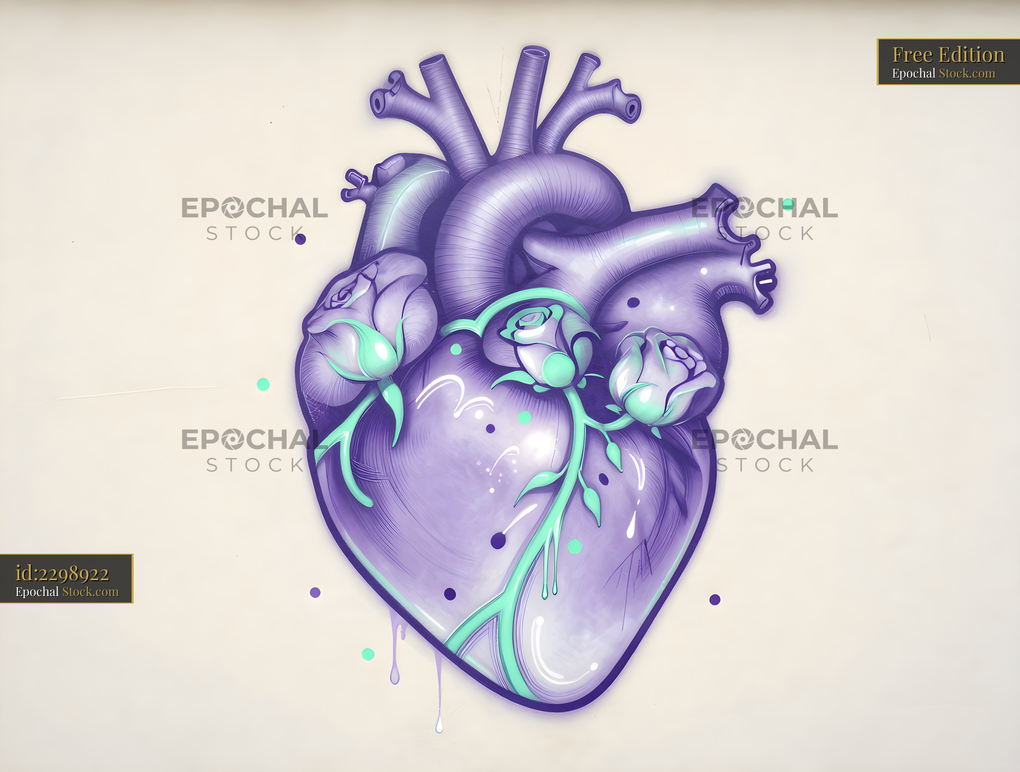 Artistic heart mural with roses on a wall in urban setting Free Premium Stock Image
