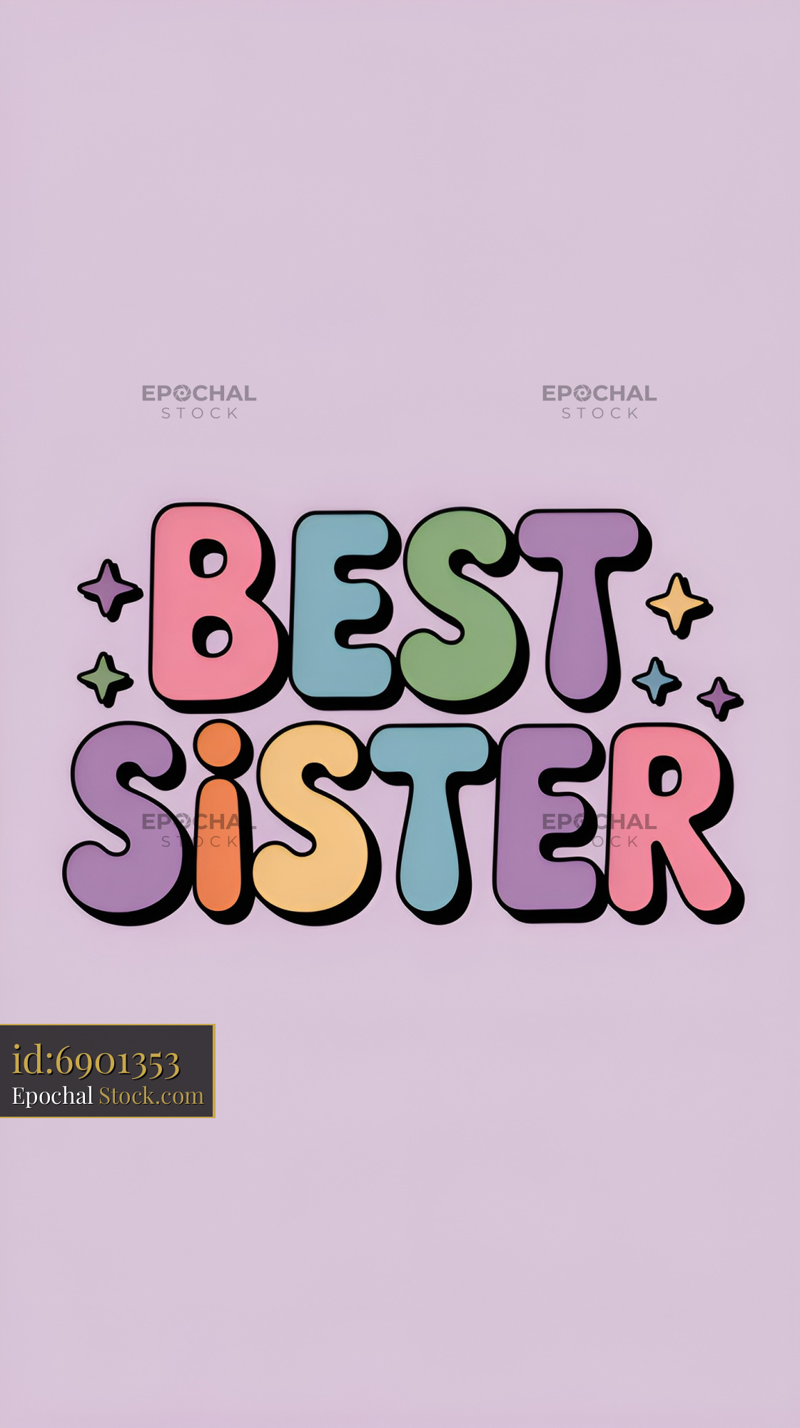 The design shows the words best sister in colorful letters on a purple background. It includes stars and has a fun, playful style. This design is suitable for gifts or celebrations.