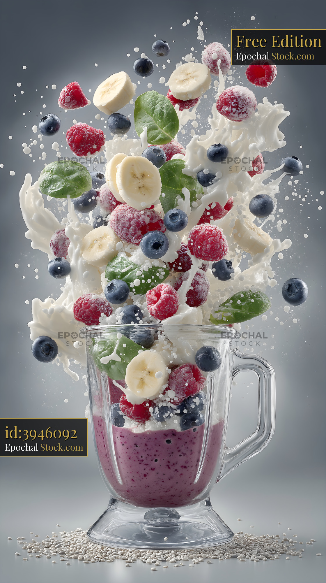 Blender filled with fruits and yogurt bursts with splashes Free Premium Stock Photo