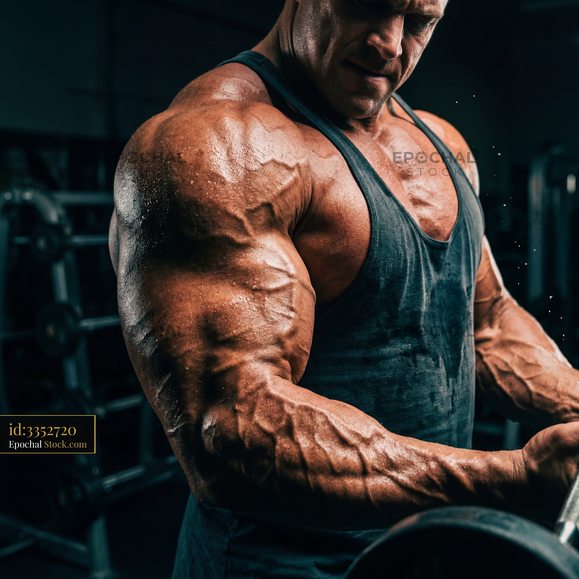 Bodybuilder lifts weights in gym during workout session Premium Stock Image