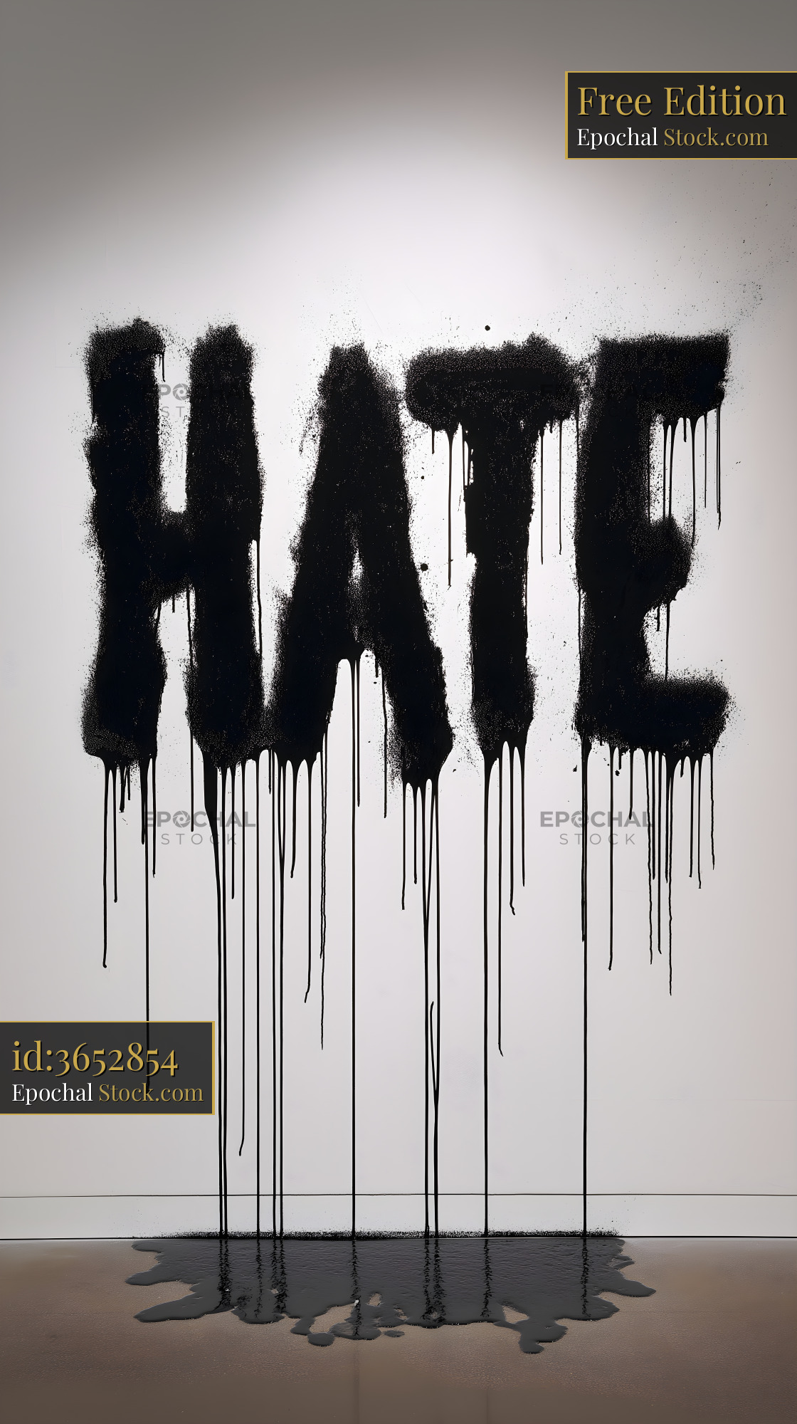 Bold letters spell hate on a gallery wall in a modern space Free Premium Stock Image