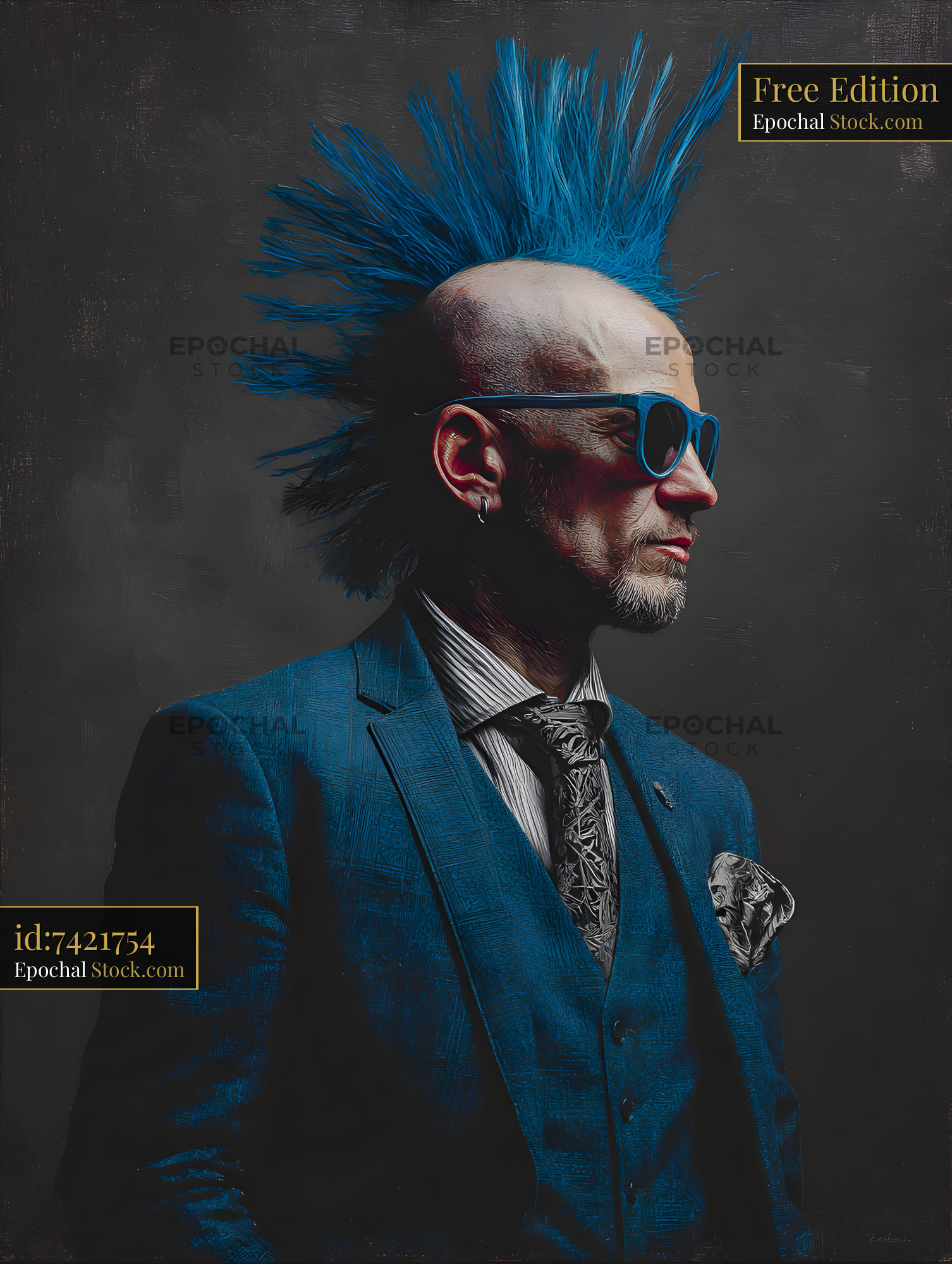 Bright blue mohawk hairstyle on man in suit looking sideways Free Premium Stock Image