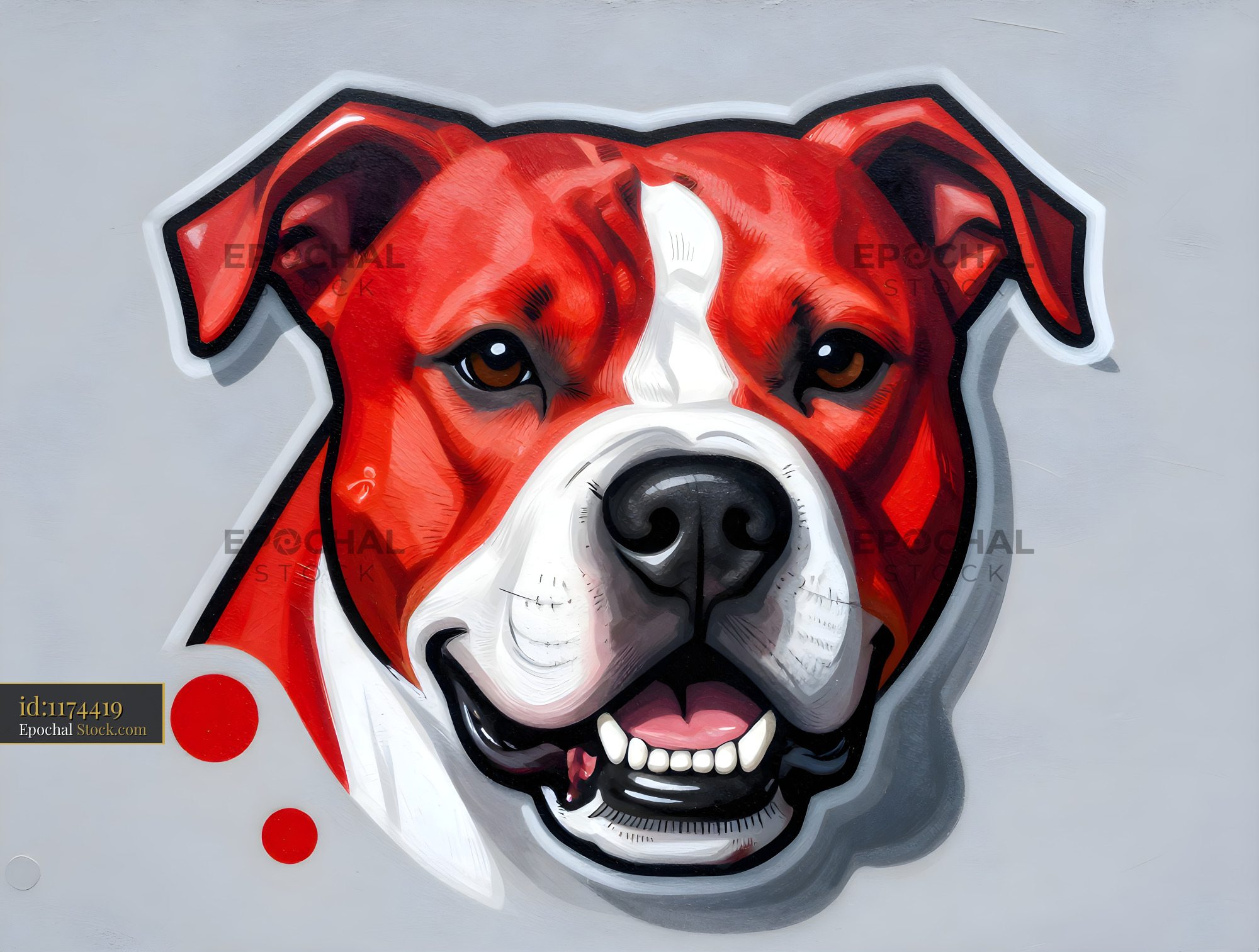 Bright dog mural on city wall created during summer event Premium Stock Image