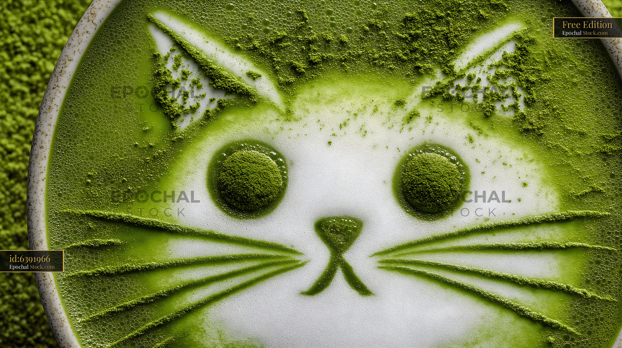 Cat design on matcha latte in a cafe setting Free Premium Stock Image