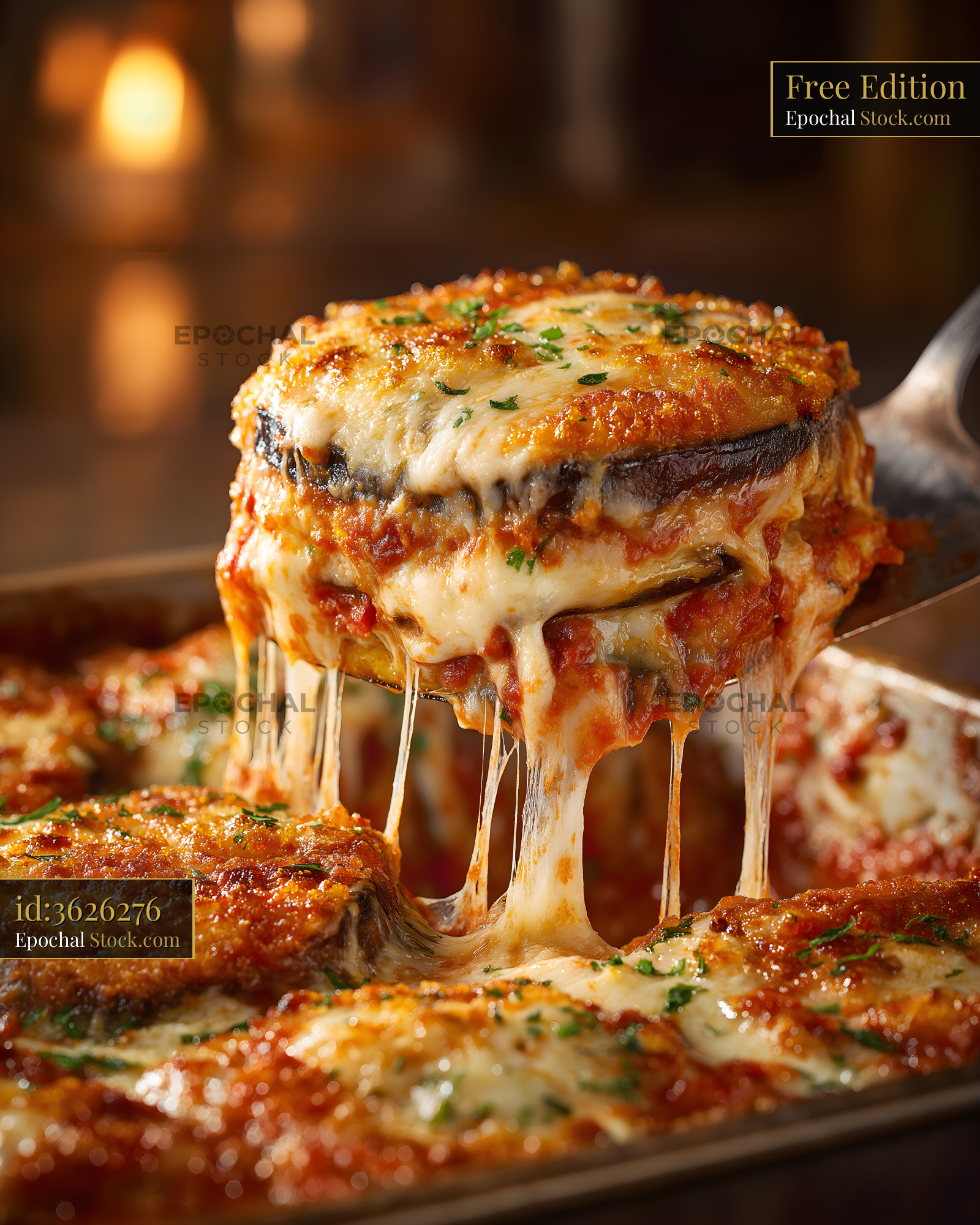 Cheesy eggplant dish served fresh from the oven Free Premium Stock Image