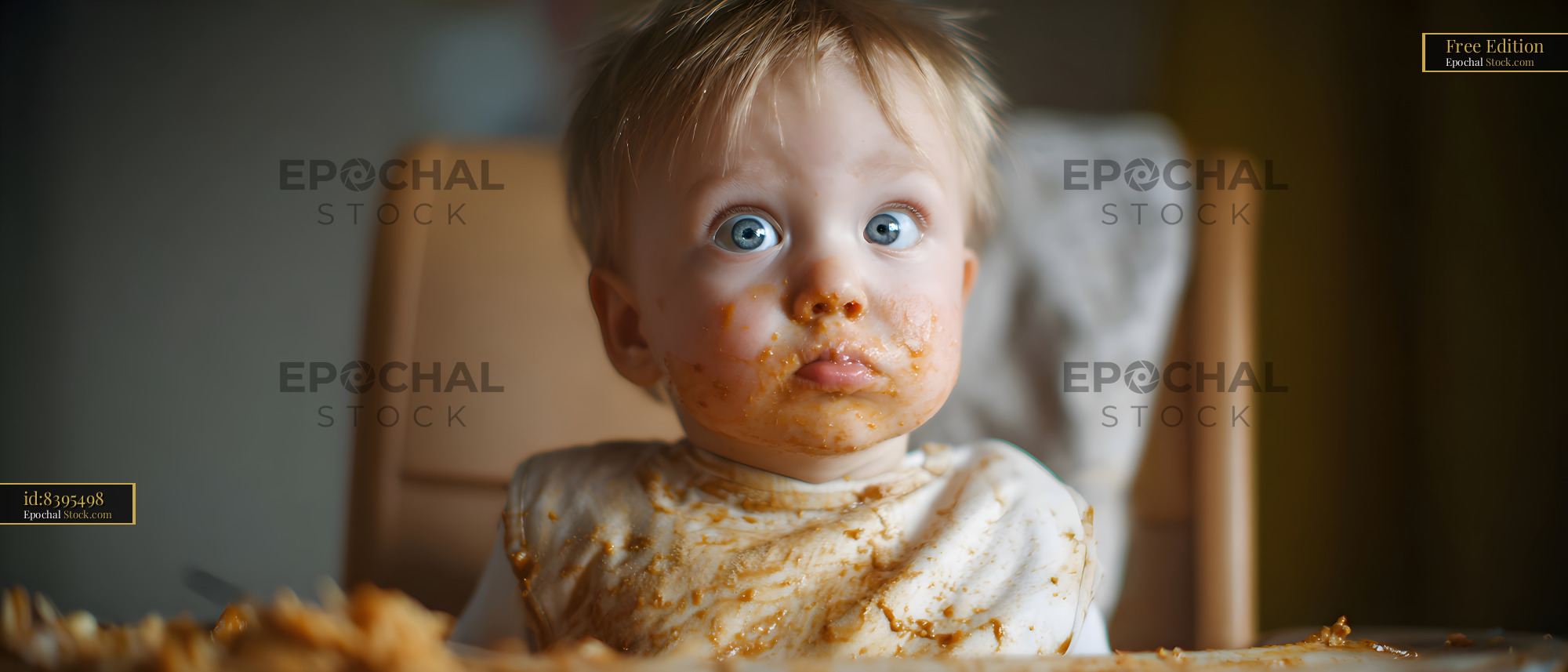 Child enjoying messy meal at home in bright room Free Premium Stock Image