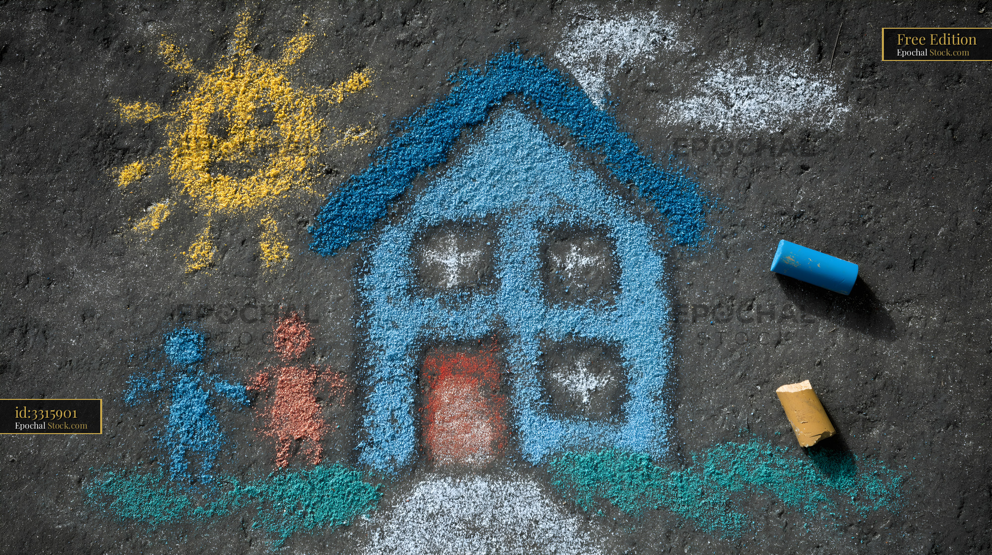 Children draw a house and sun with chalk on the ground Free Premium Stock Photo