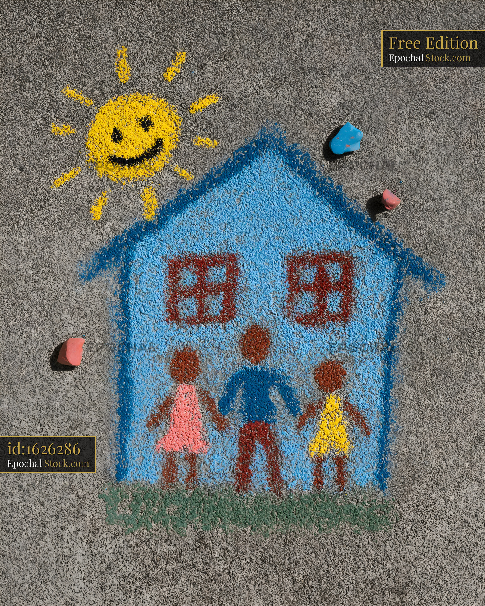 Children drawing a house and sun with chalk on ground Free Premium Stock Photo