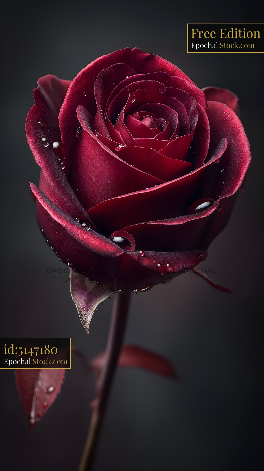Close up of a single red rose with water droplets Free Premium Stock Image