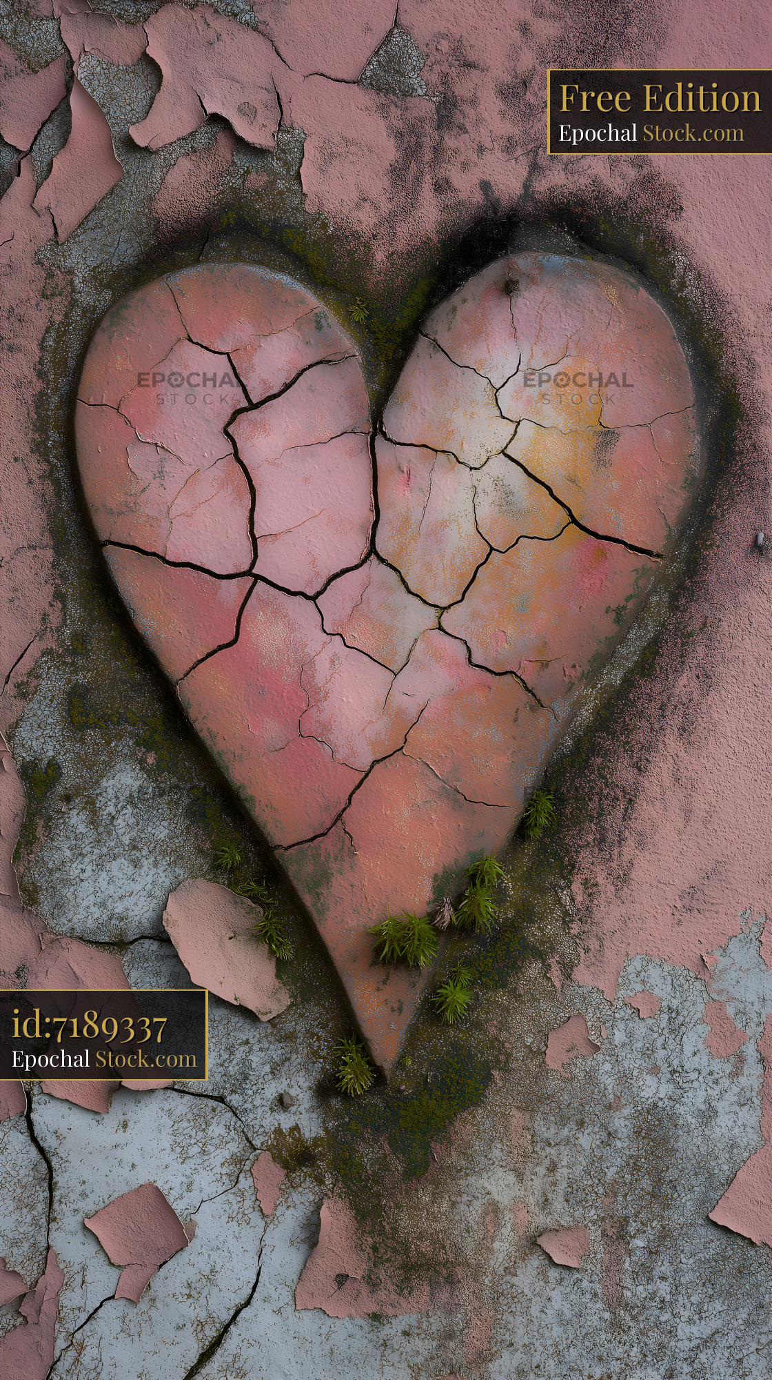 Cracked heart shape on a wall shows signs of wear and age Free Premium Stock Photo