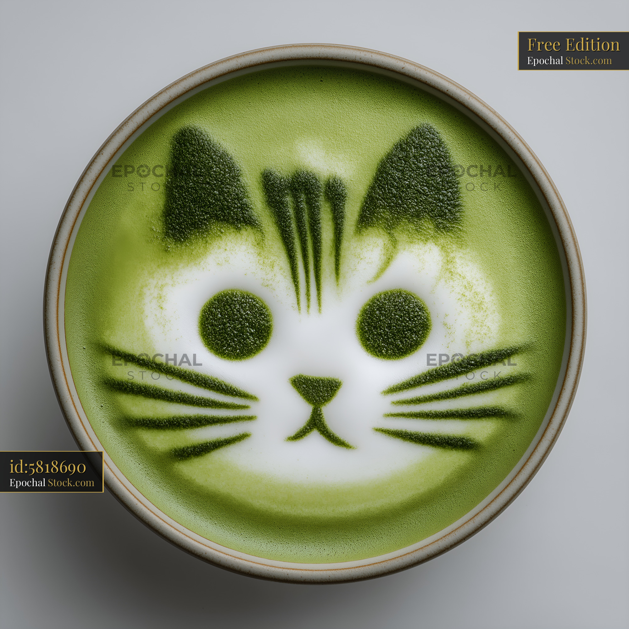 Cute cat latte art made with matcha served in a bowl Free Premium Stock Image