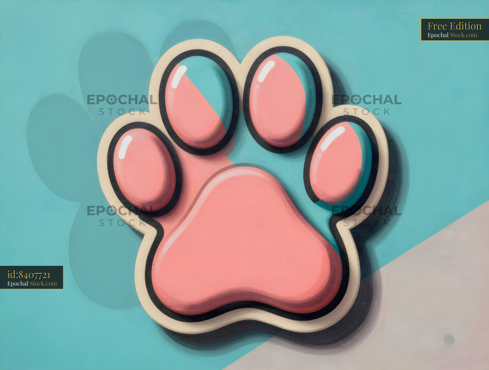 Bright pink paw print is shown on a blue wall. It has a simple design with rounded edges and is placed in a playful manner. The background contrasts with the paw shape.