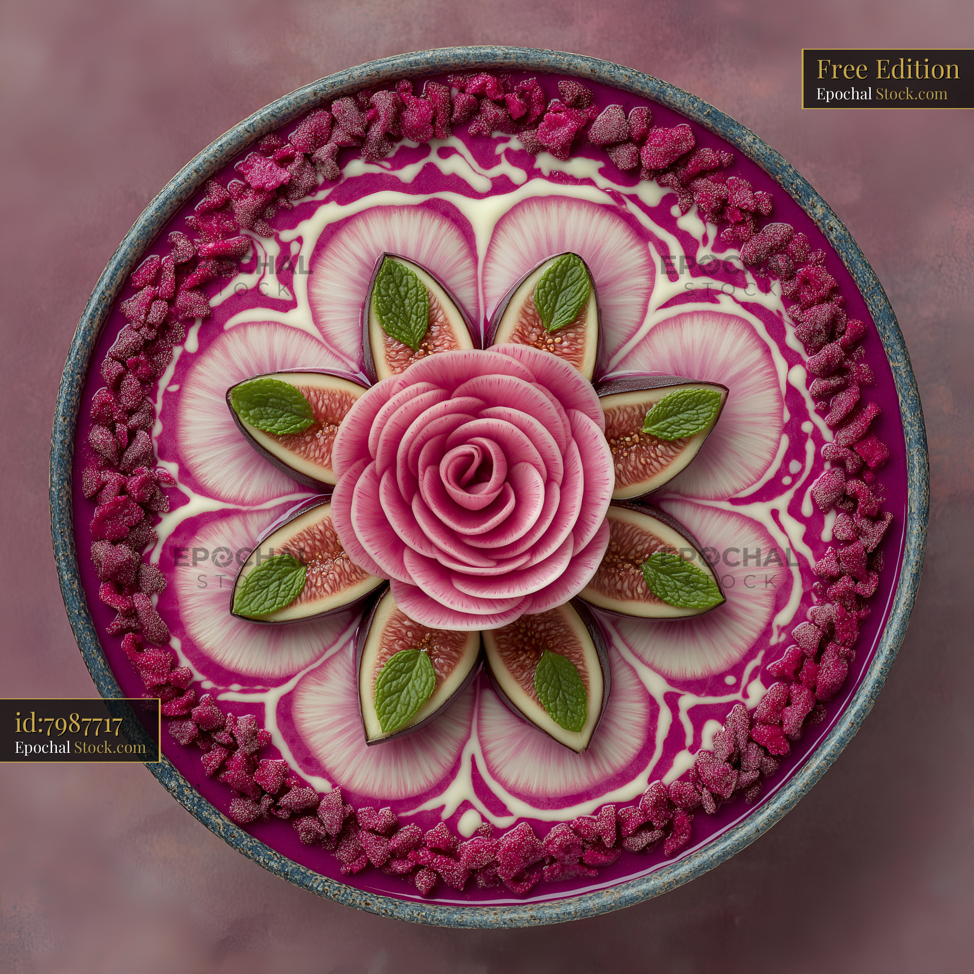 Delicious dessert with floral design made from fruits and cream Free Premium Stock Photo