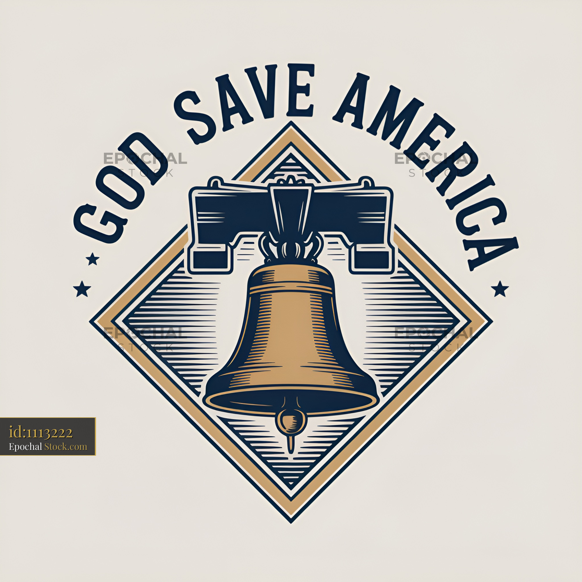 The design shows a bell with a text that says God Save America. It features a vintage look with a diamond shape around the bell. This design can be used for various items.