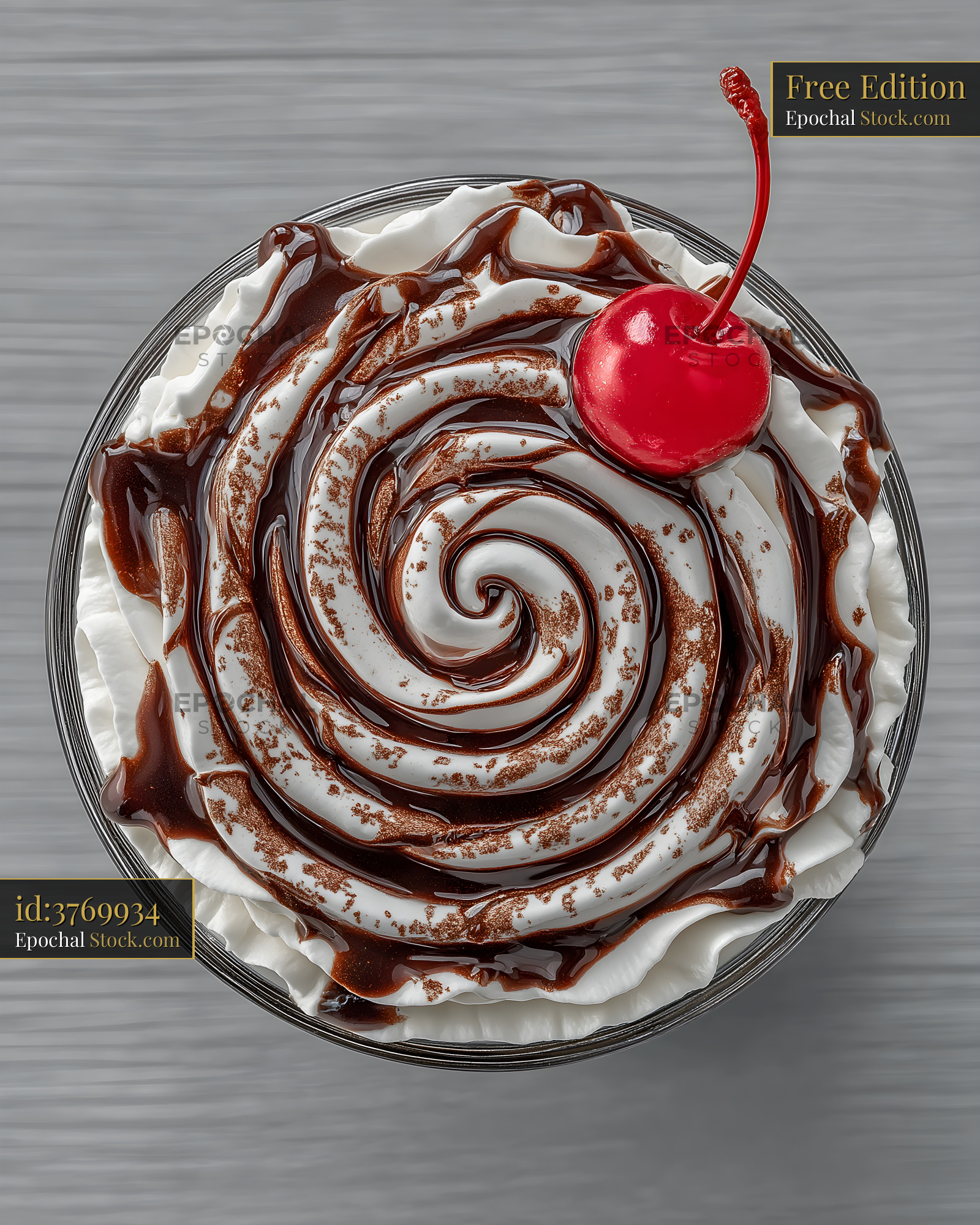 Dessert with whipped cream, chocolate, and cherry on top Free Premium Stock Photo