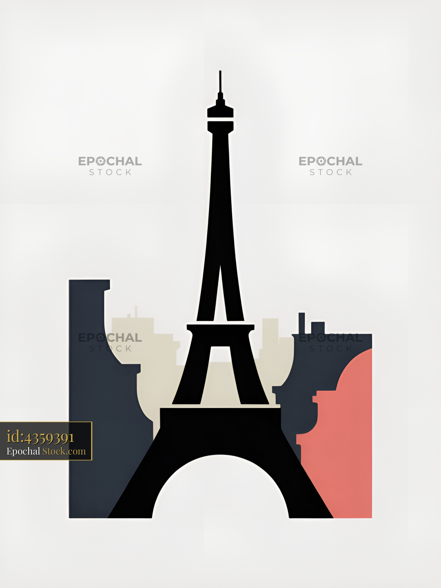 Eiffel Tower silhouette with colorful background shapes in Paris Premium Stock Image