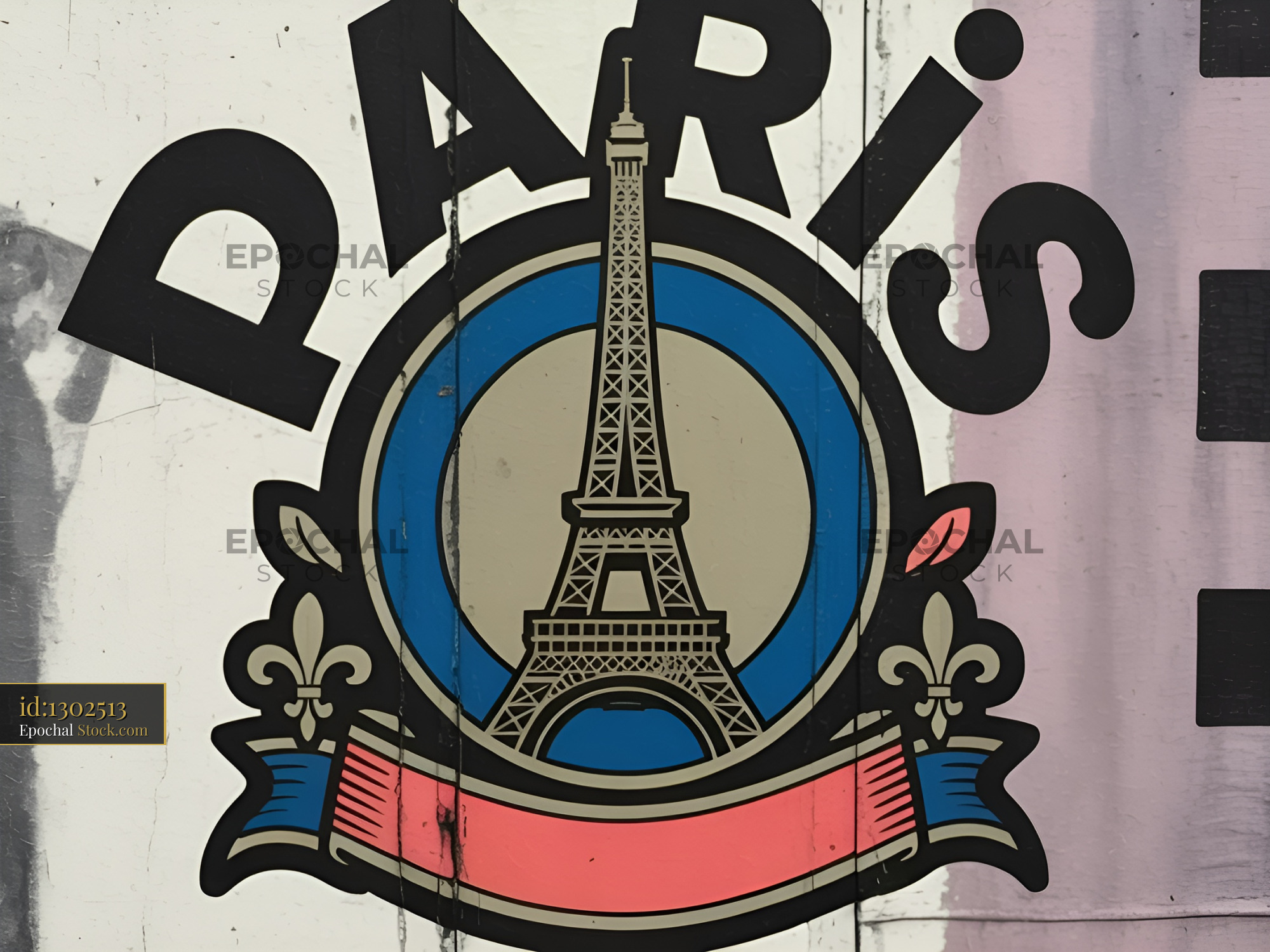 Eiffel Tower symbol shown in a Parisian street art mural Premium Stock Photo