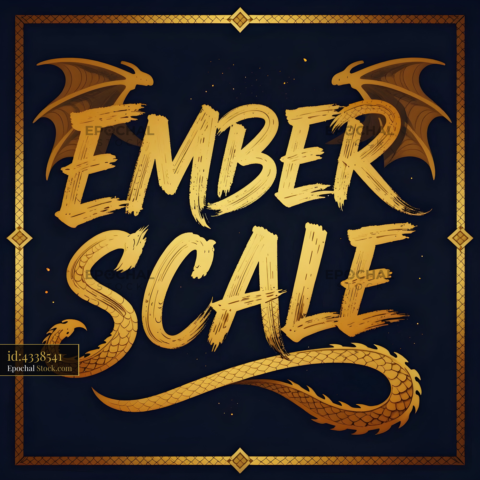 Exploring Ember Scale dragon design with golden text Premium Stock Photo