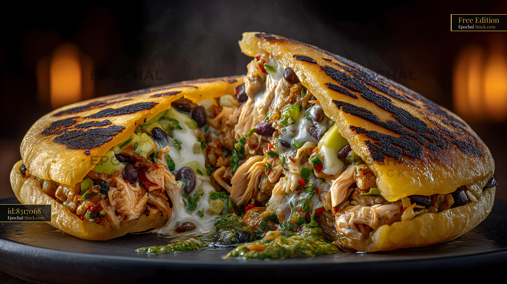Fresh arepas filled with chicken and cheese for hungry diners Free Premium Stock Photo
