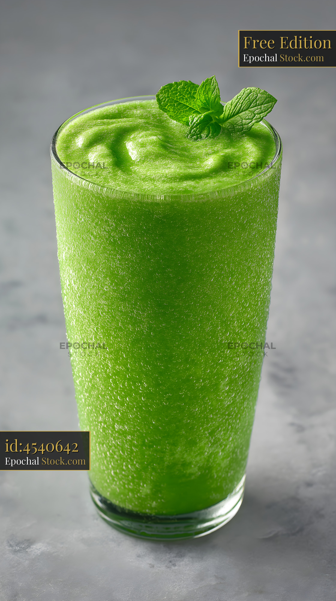 Fresh green smoothie with mint in tall glass on gray background Free Premium Stock Image