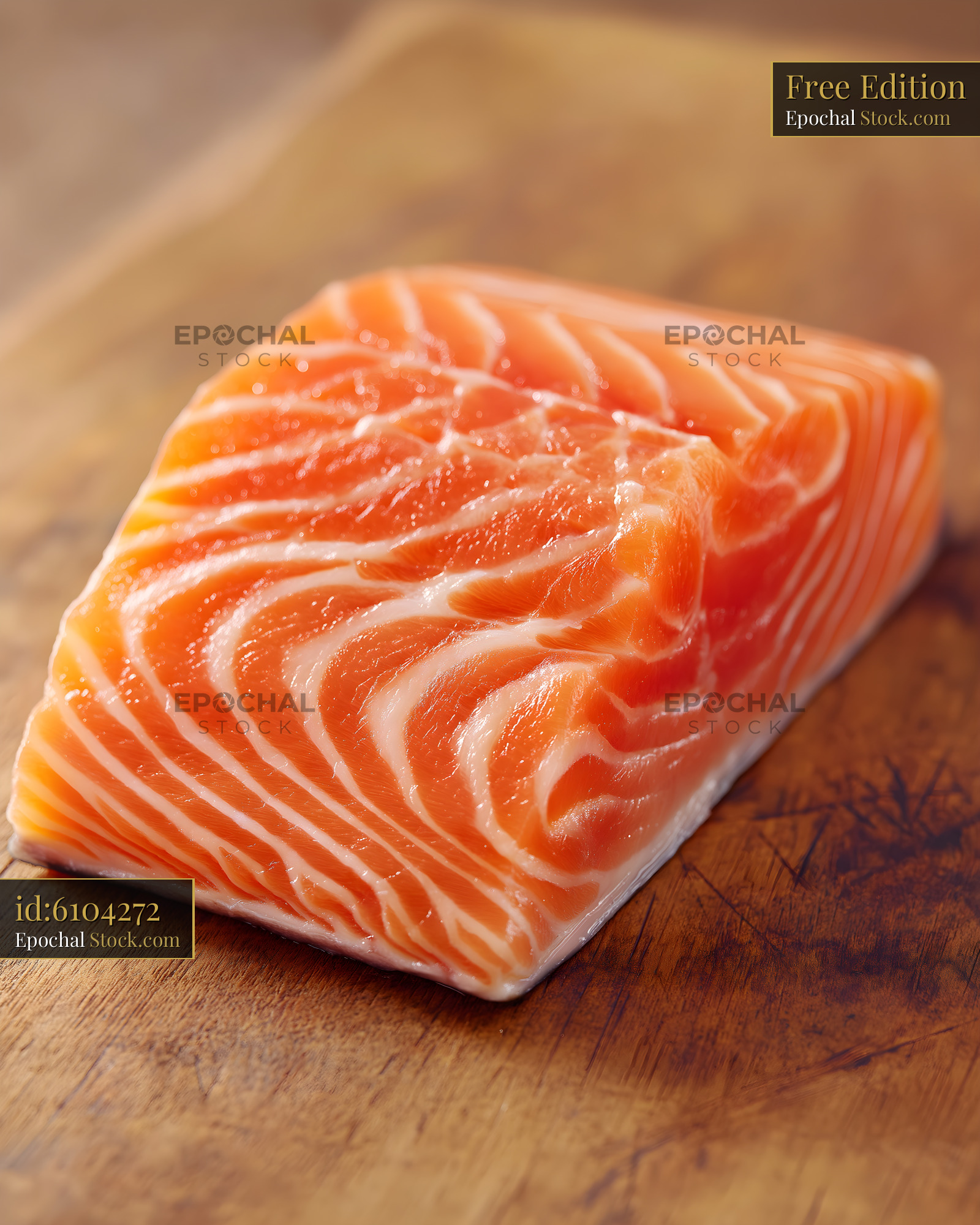 Fresh salmon fillet on a wooden cutting board for cooking Free Premium Stock Image