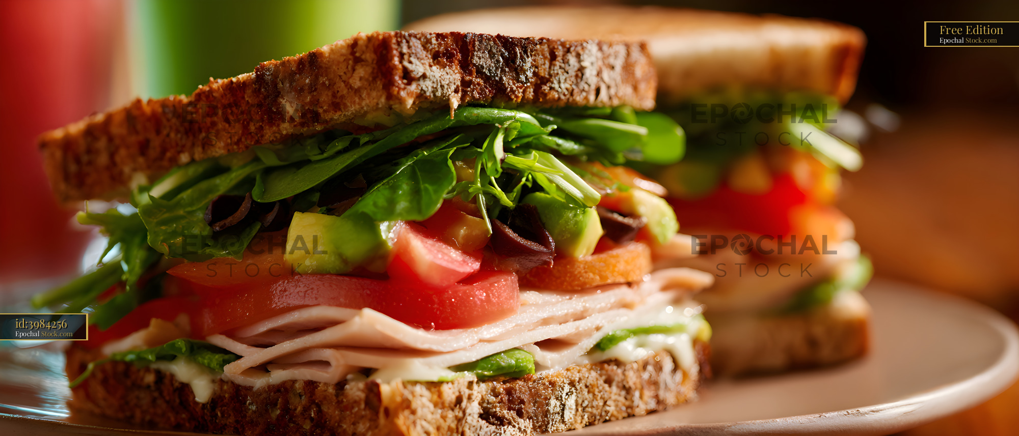 Fresh sandwich with vegetables and turkey on whole grain bread Free Premium Stock Image