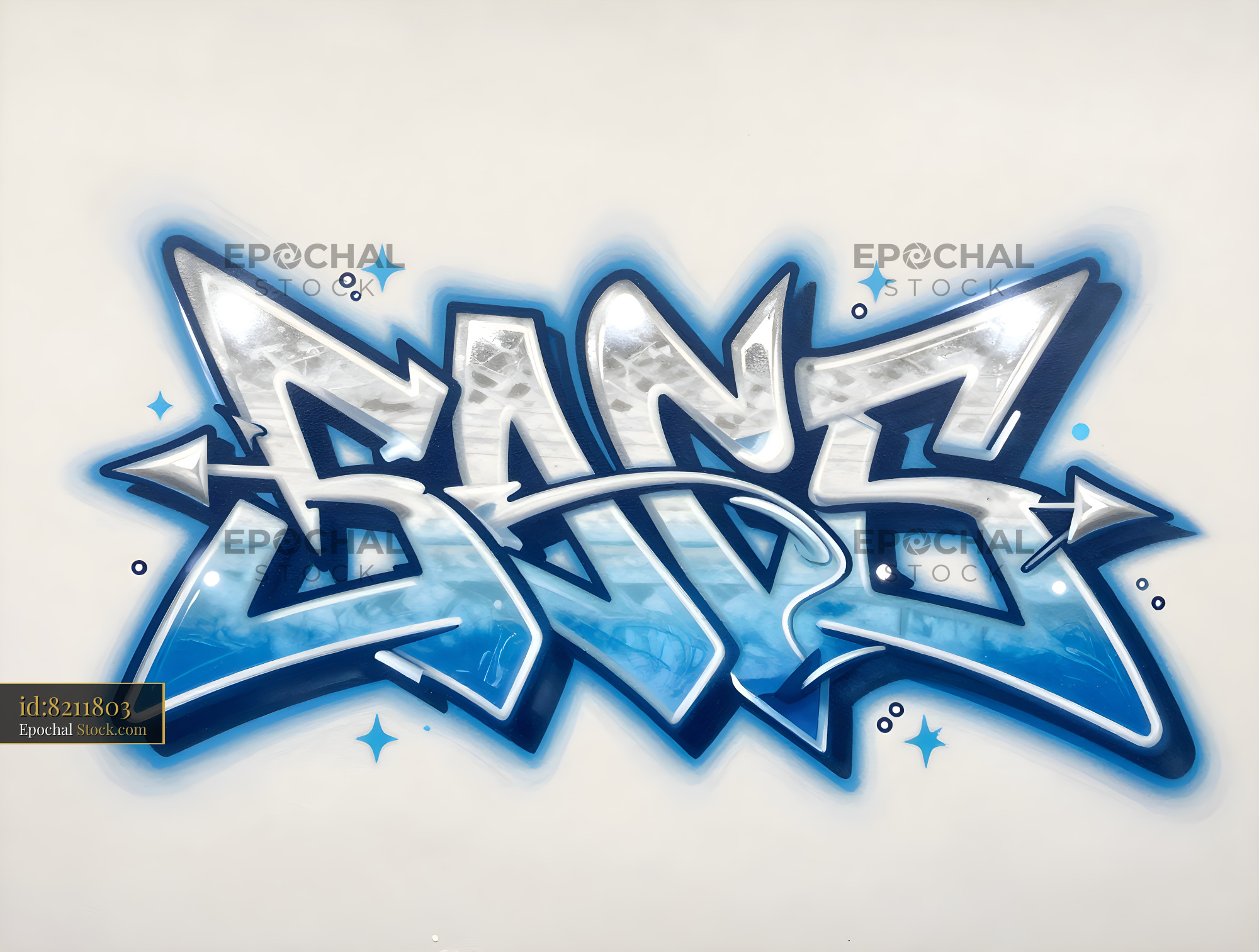 Graffiti art design on wall with blue colors in urban area Premium Stock Image