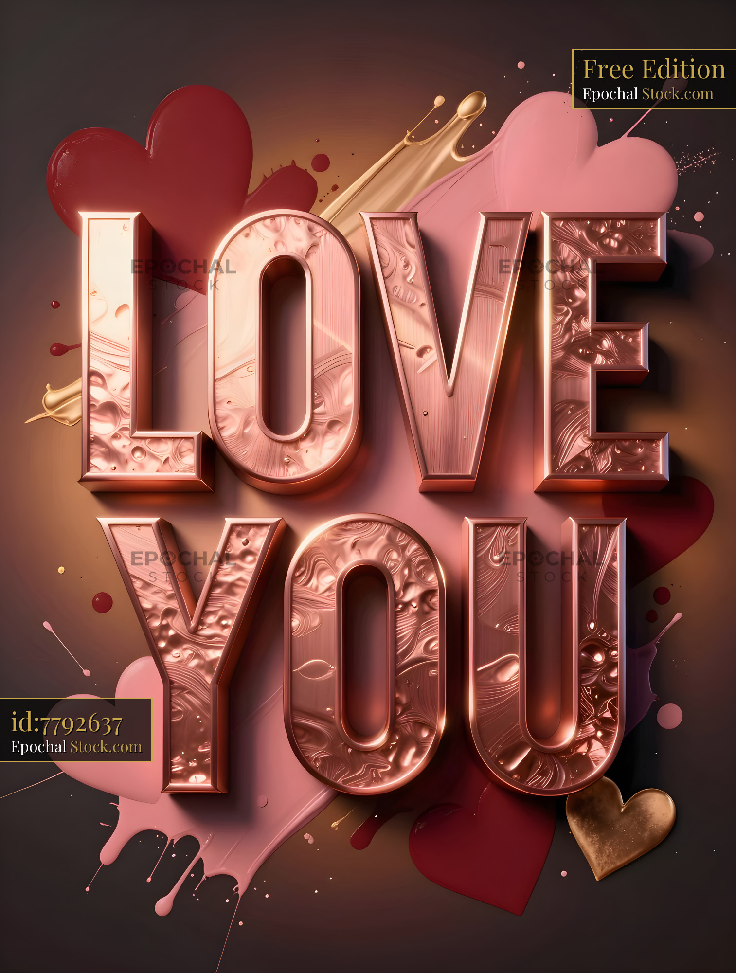 A design features the words love you in large letters. The background has hearts and splashes of color. This artwork displays feelings of affection and warmth.