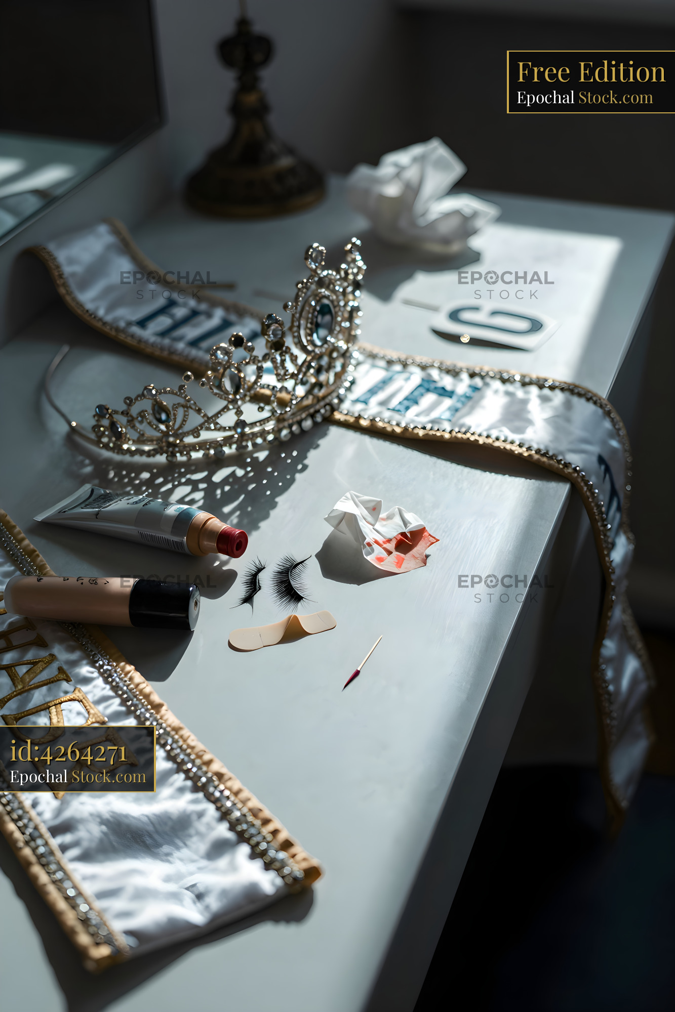 Items for a beauty pageant on a table in a bright room Free Premium Stock Image