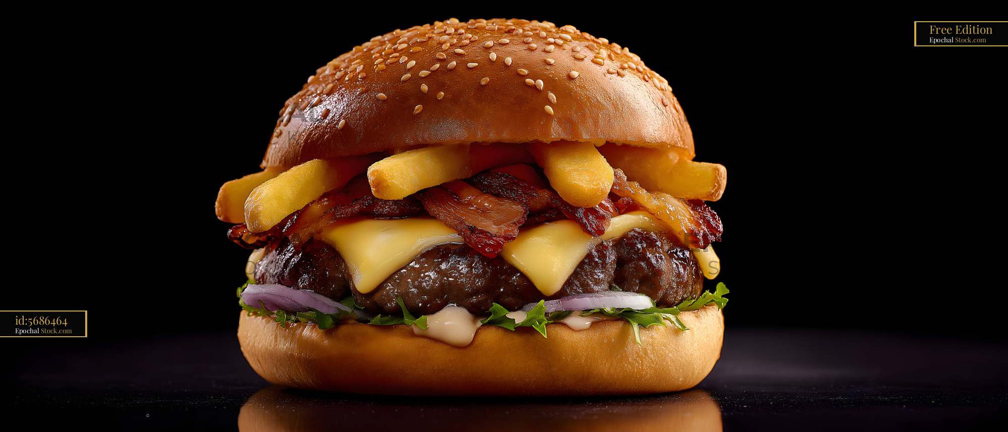 Juicy burger with cheese, bacon, and fries ready to eat Free Premium Stock Image