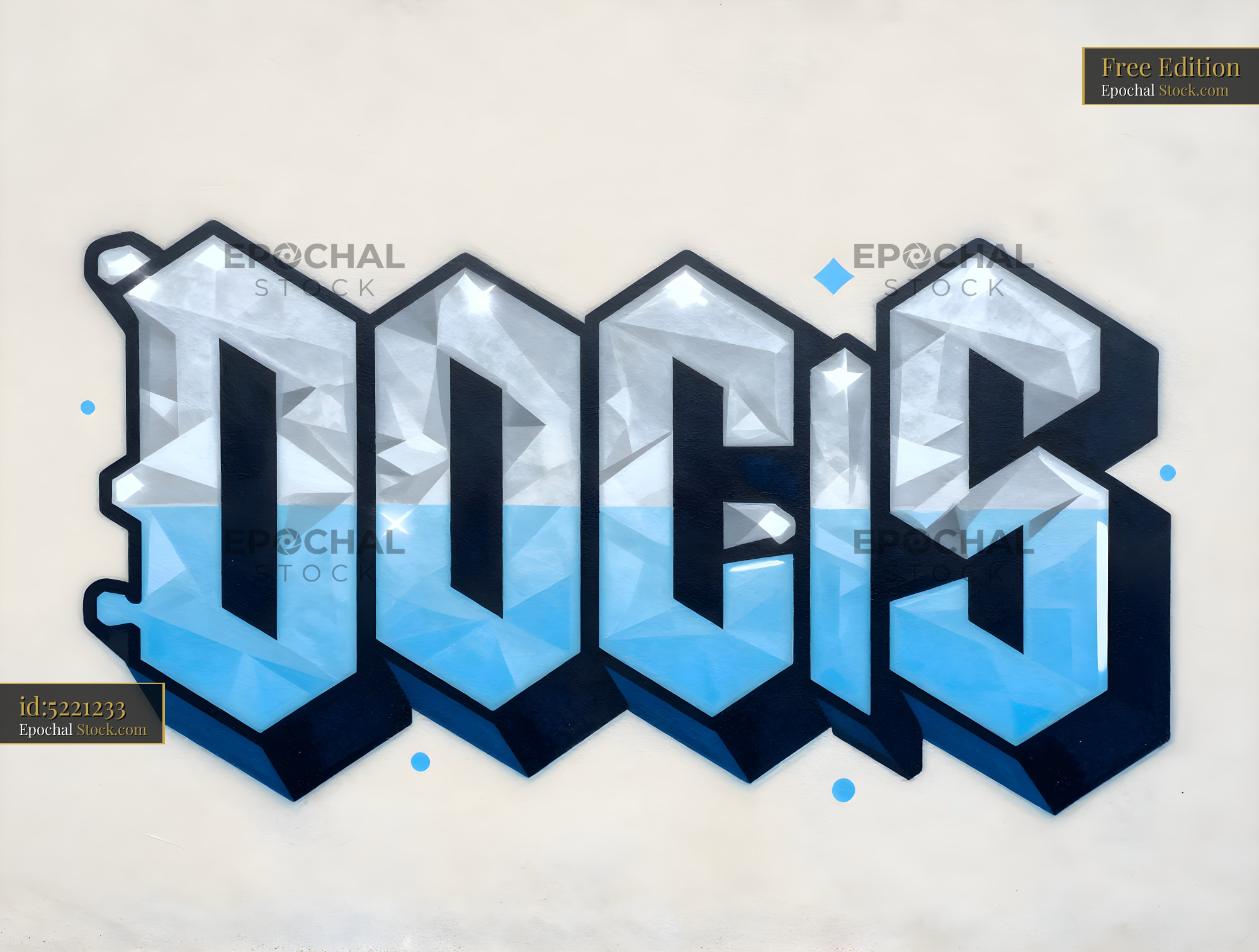 Large blue graffiti on a white wall in an urban setting Free Premium Stock Image