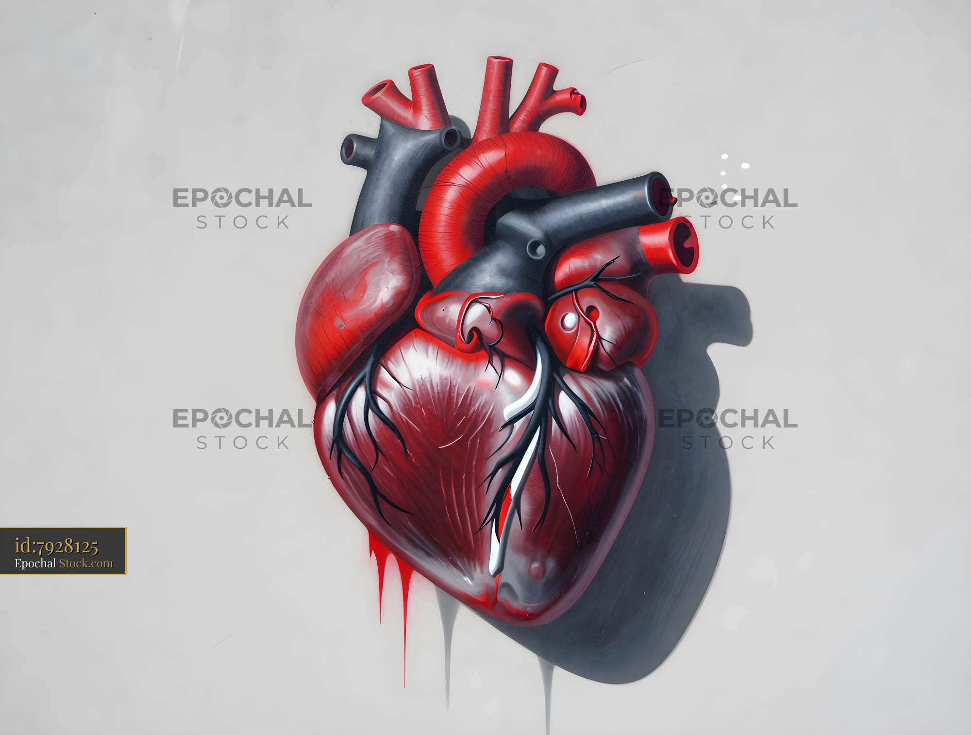A heart mural is painted on a gray wall in an urban area. The design shows a realistic heart with red and black colors. The sunlight creates shadows on the surface making it stand out.
