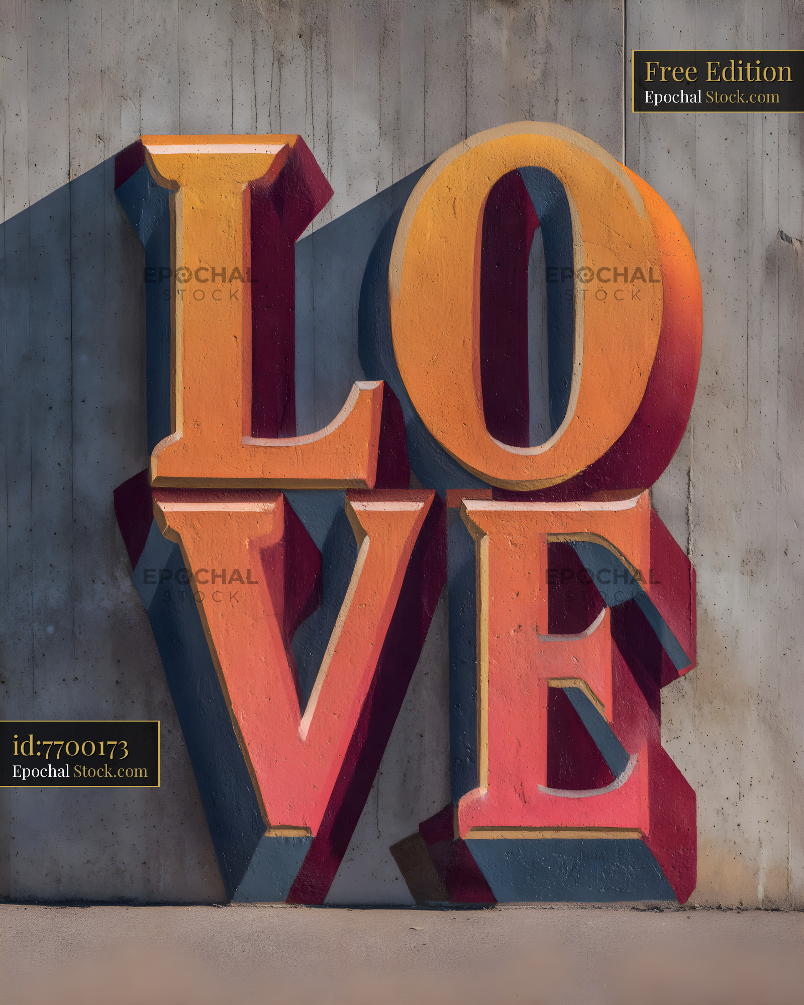 Large word love stands against plain wall in city street Free Premium Stock Image