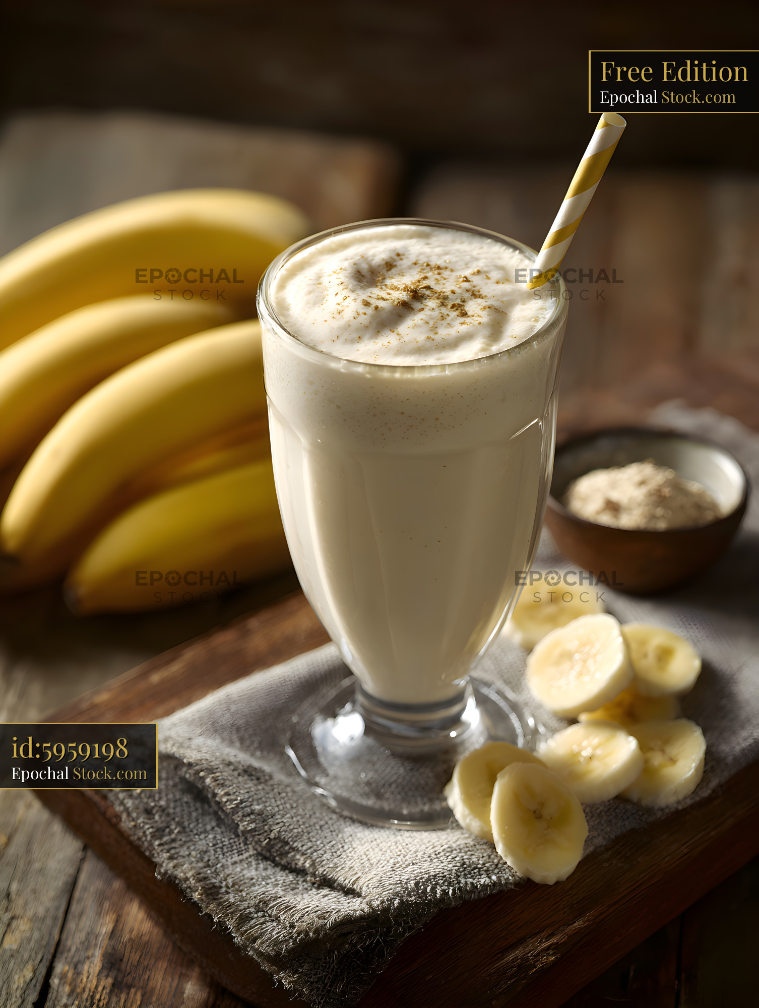 Making a banana milkshake with fresh bananas and ingredients Free Premium Stock Image