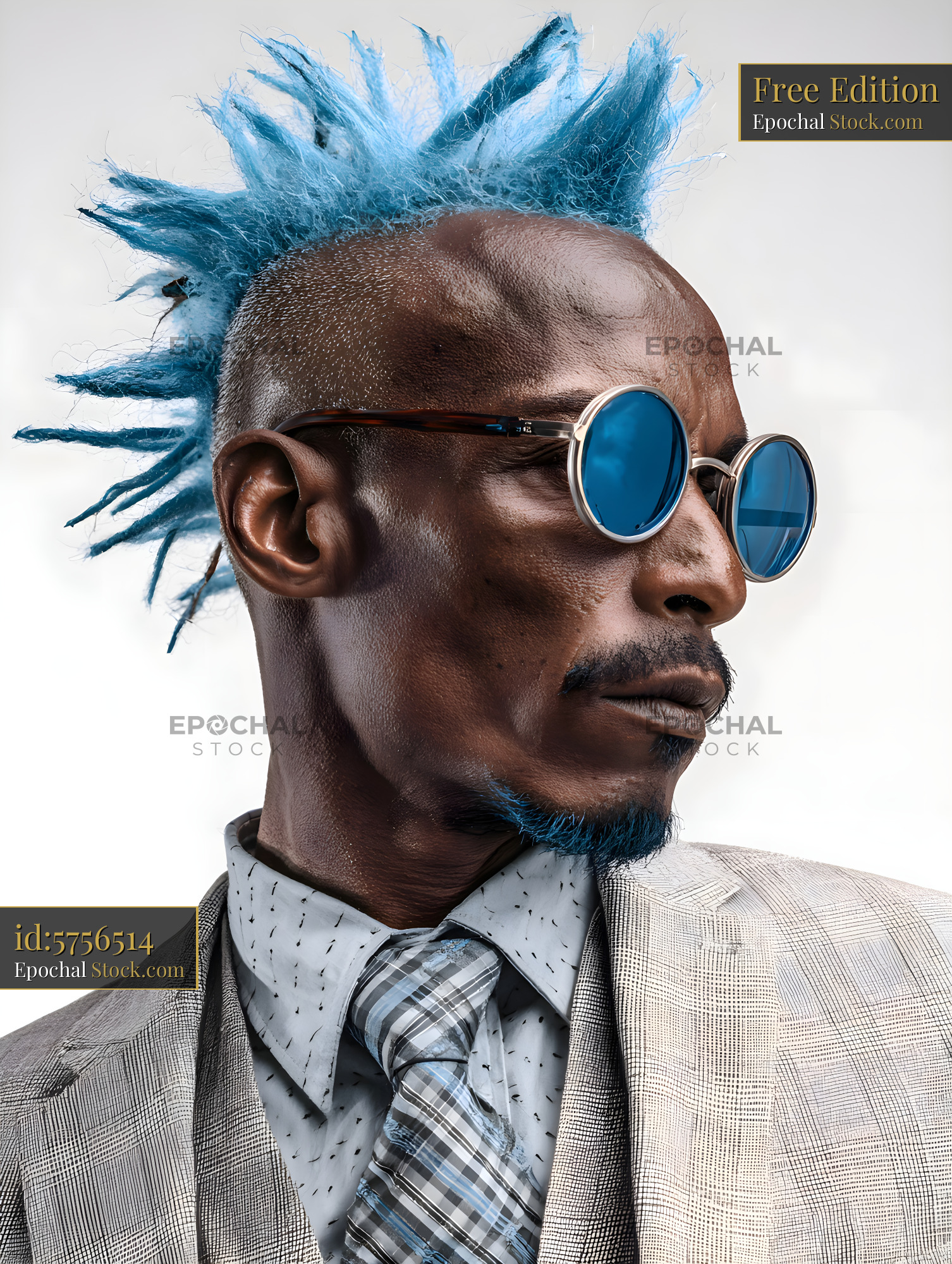 Man with blue hair and round sunglasses poses for a portrait Free Premium Stock Image