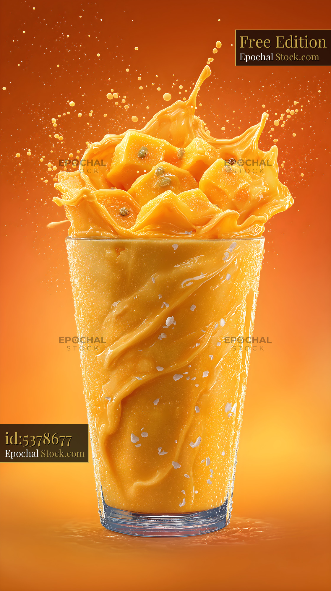Mango smoothie with splash of fruit on orange background Free Premium Stock Photo