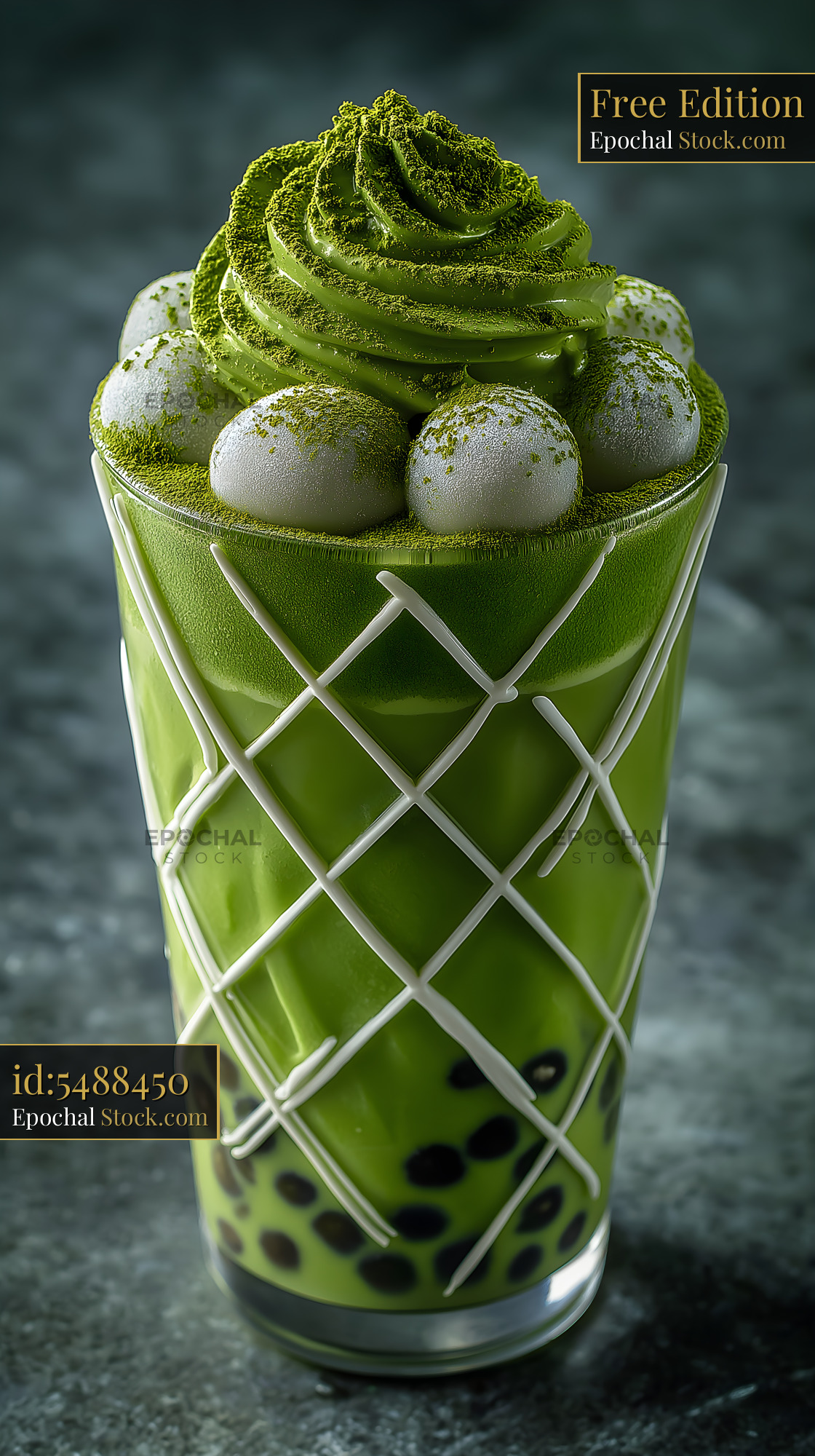 Matcha dessert drink served with toppings in glass cup Free Premium Stock Image