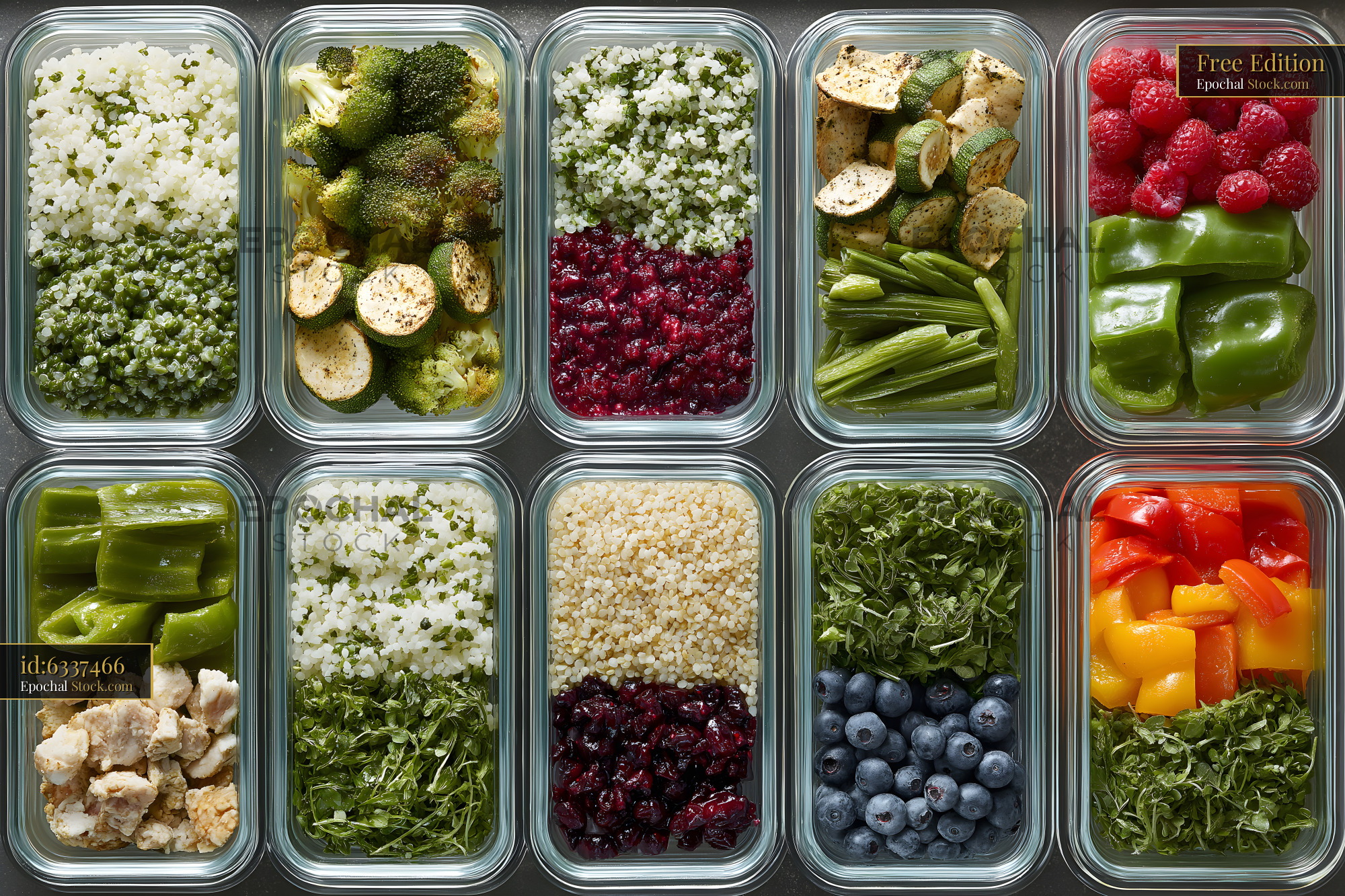Meal prep with various ingredients in clear containers Free Premium Stock Image