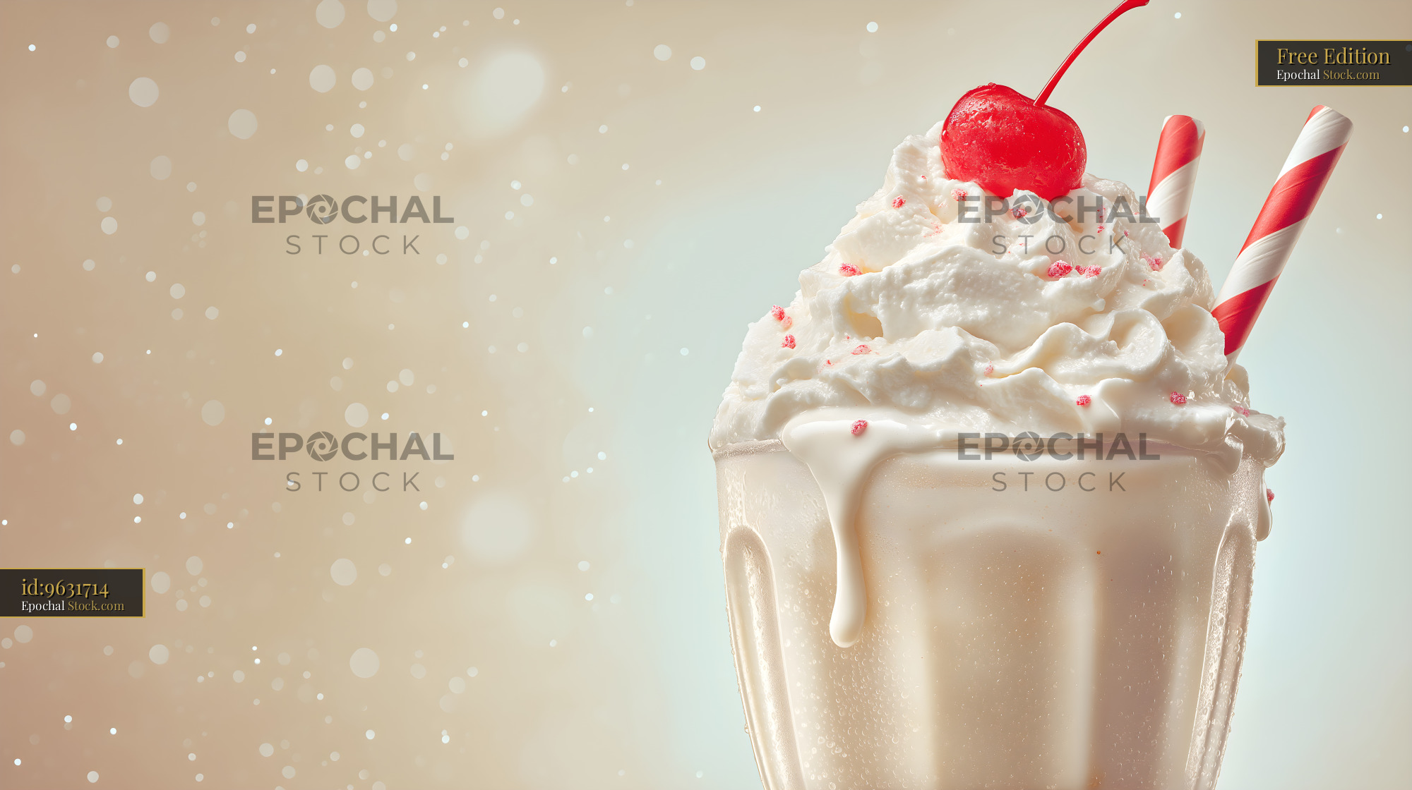 Milkshake topped with whipped cream and cherry sits in glass Free Premium Stock Image