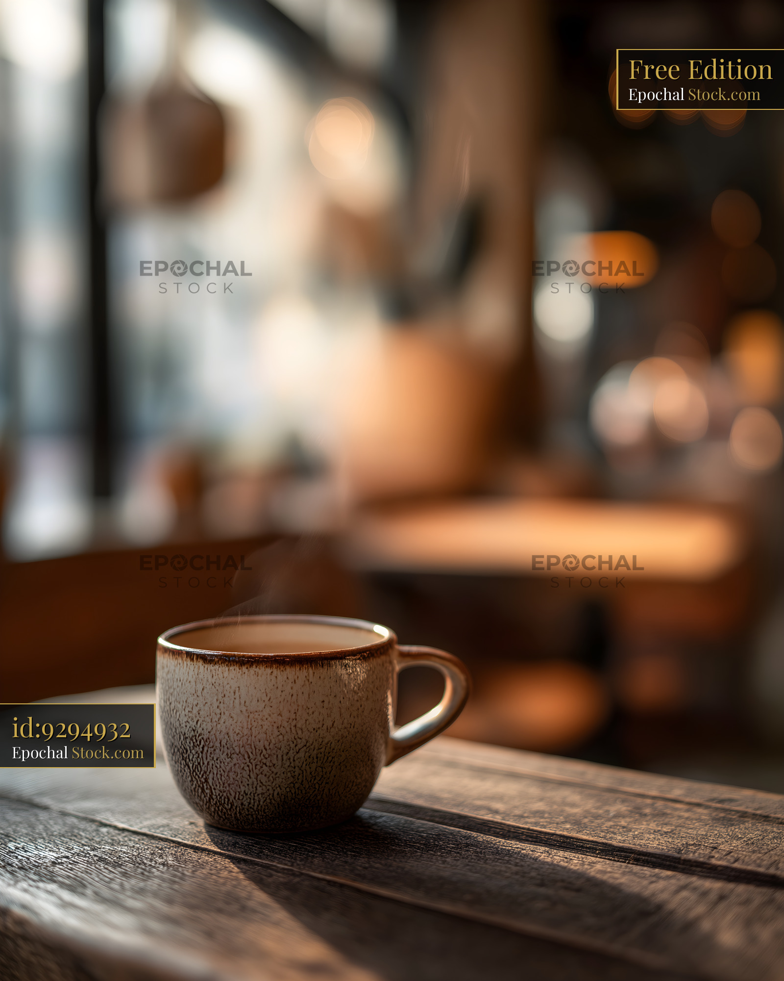 Morning coffee on a wooden table in a cozy cafe setting Free Premium Stock Image