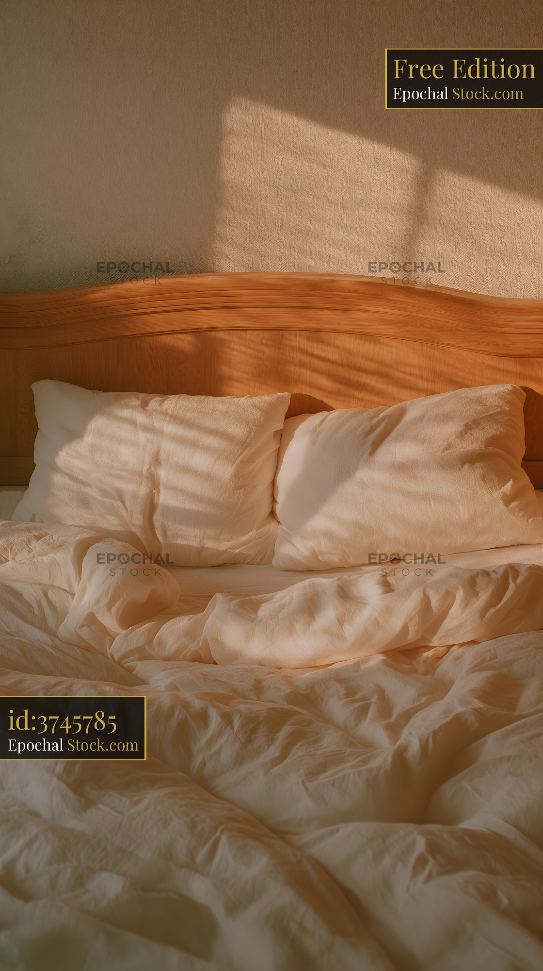 Sunlight comes through a window and hits a bed. The sheets are unmade and pillows are slightly apart. The scene shows a warm, inviting space in the morning.