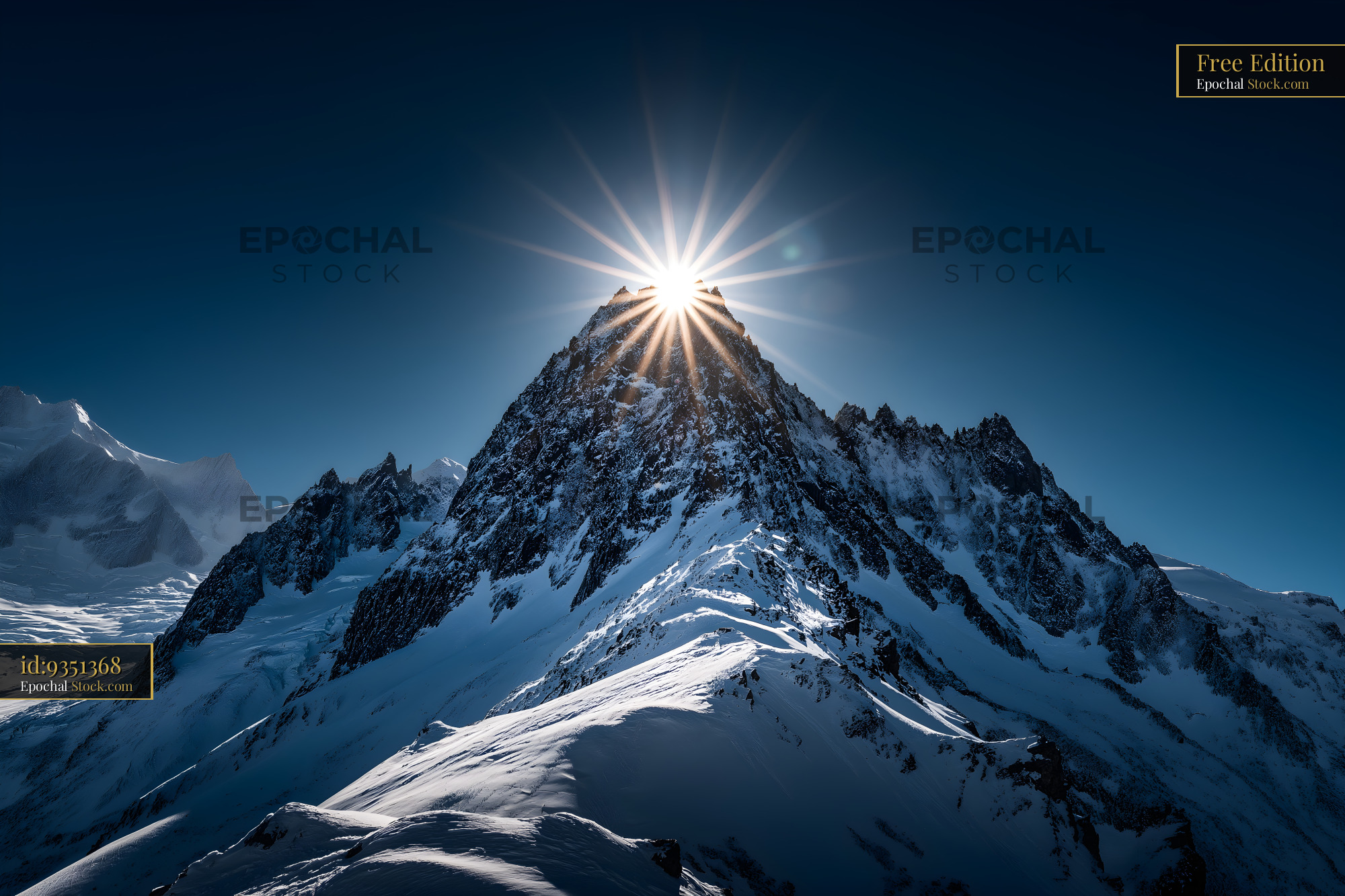 Mountain peak shines under bright sunlight at dawn Free Premium Stock Photo