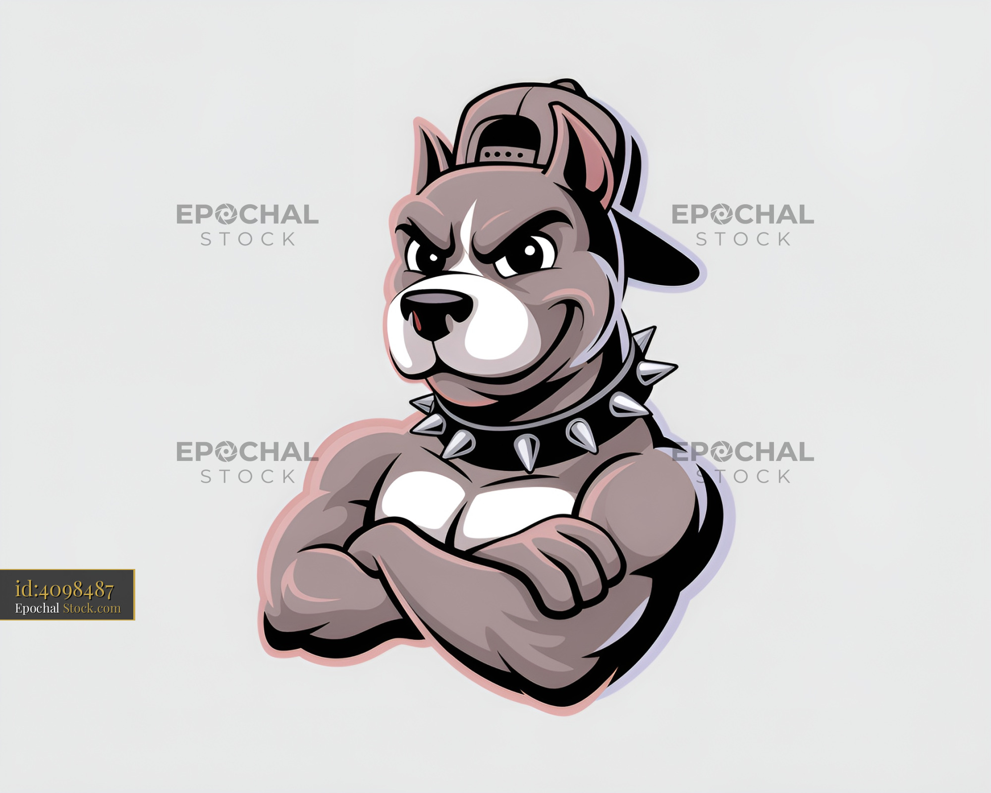 Muscular dog character with cap and spikes on collar Premium Stock Photo