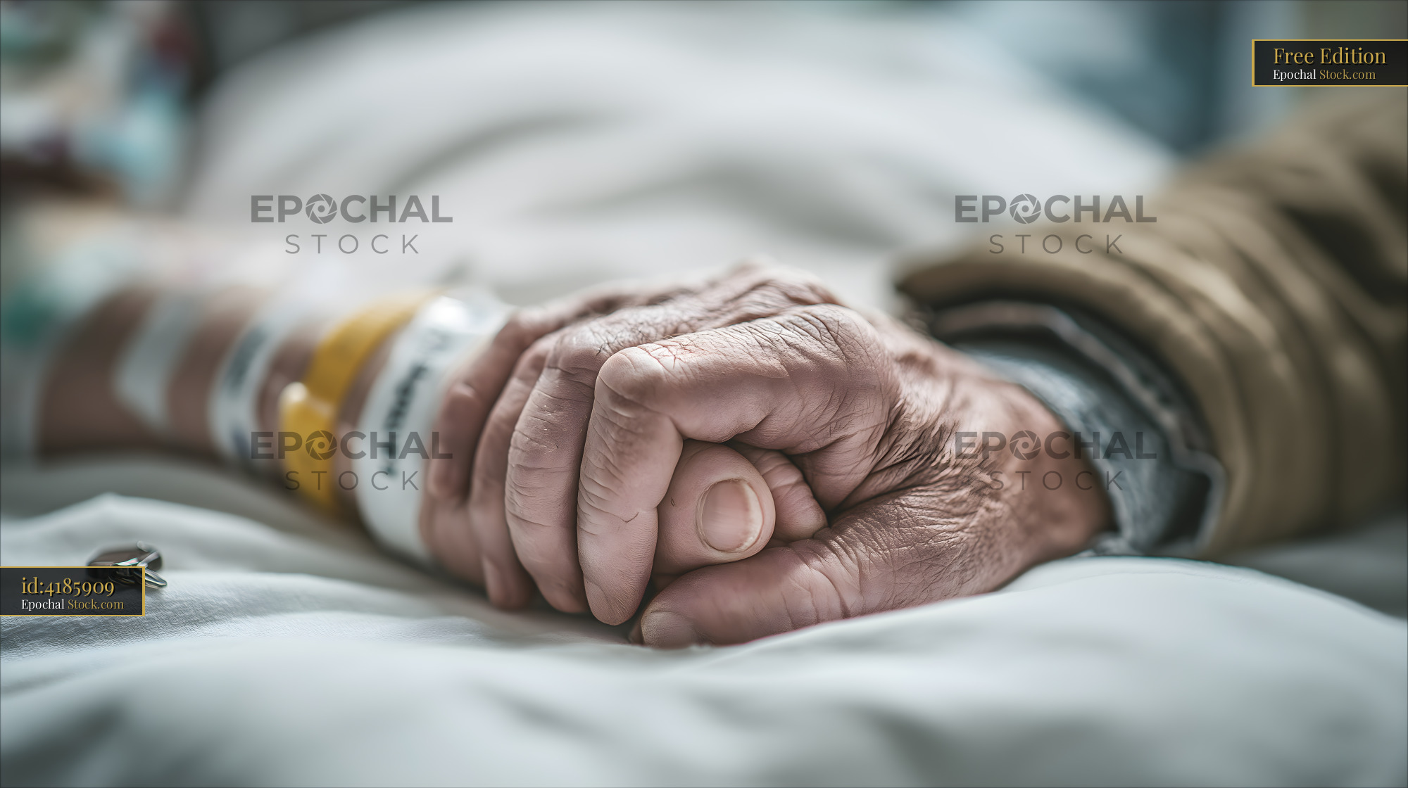 Old hands holding each other in a hospital room during recovery Free Premium Stock Image