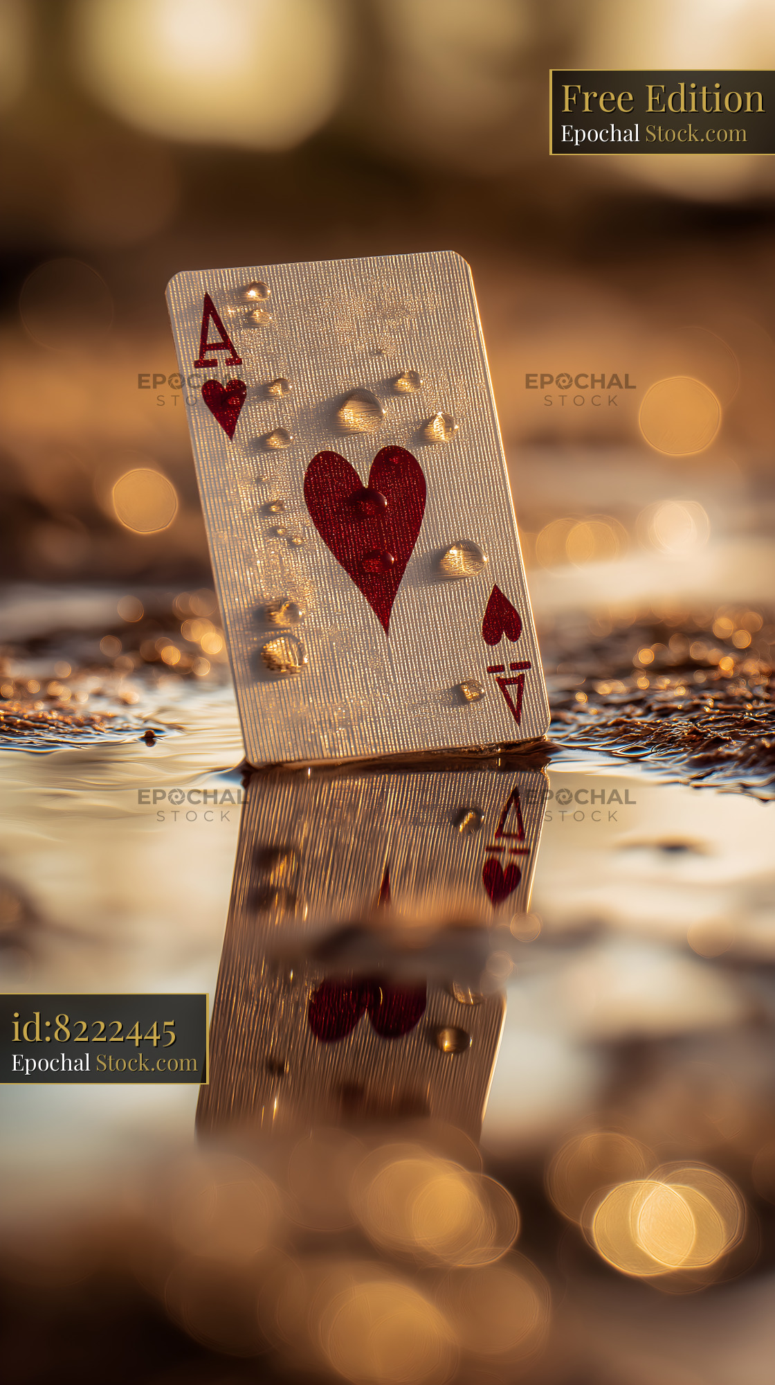 Playing card rests in water with reflections and light Free Premium Stock Image