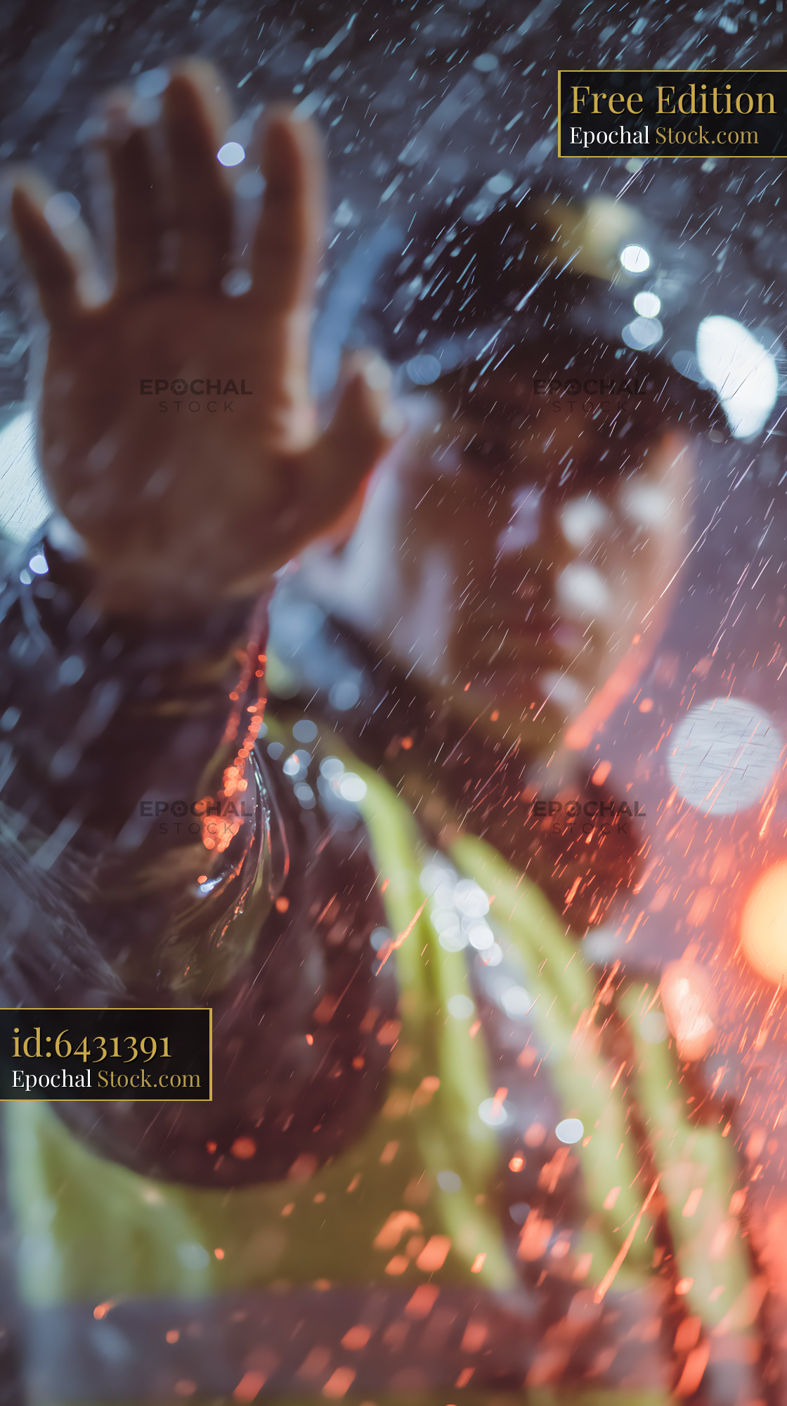 Police officer waves hand in rain at night Free Premium Stock Image