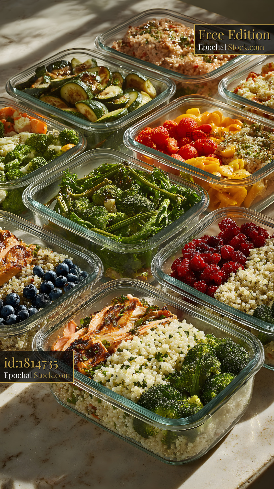 Prepared meals are organized in glass containers Free Premium Stock Image